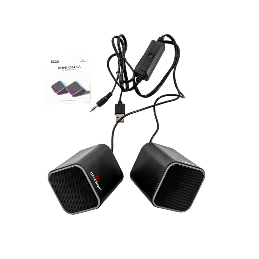 Caixa de Som Compacta 6W RMS RGB Computador Notebook Entrada Auxiliar Grasep D-GP201