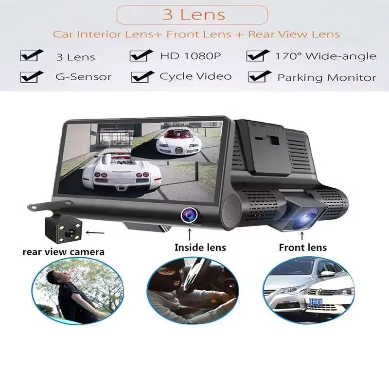 DVR Automotivo 3 Câmeras Alta Definição Visão Noturna Detecção de Movimento Bateria Interna