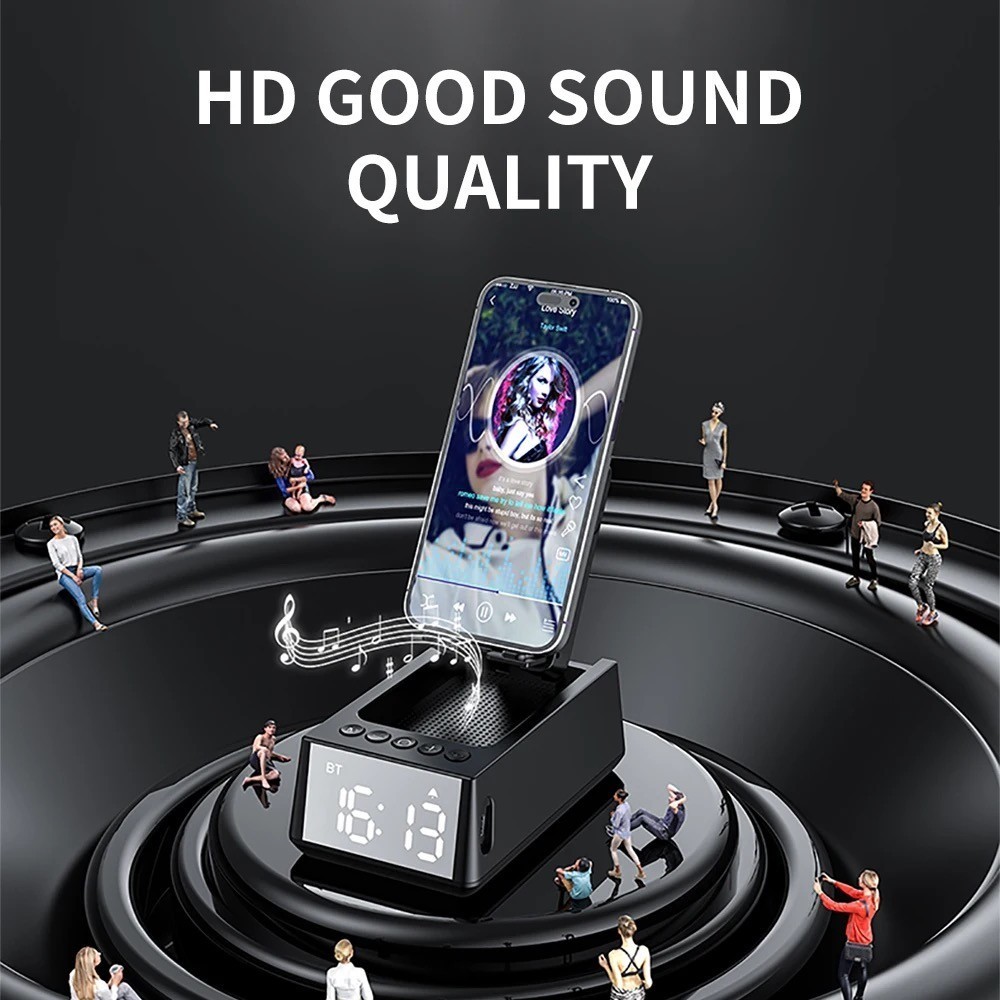 Suporte para Celular com Despertador digital e Alto-Falante Sem Fio Bluetooth