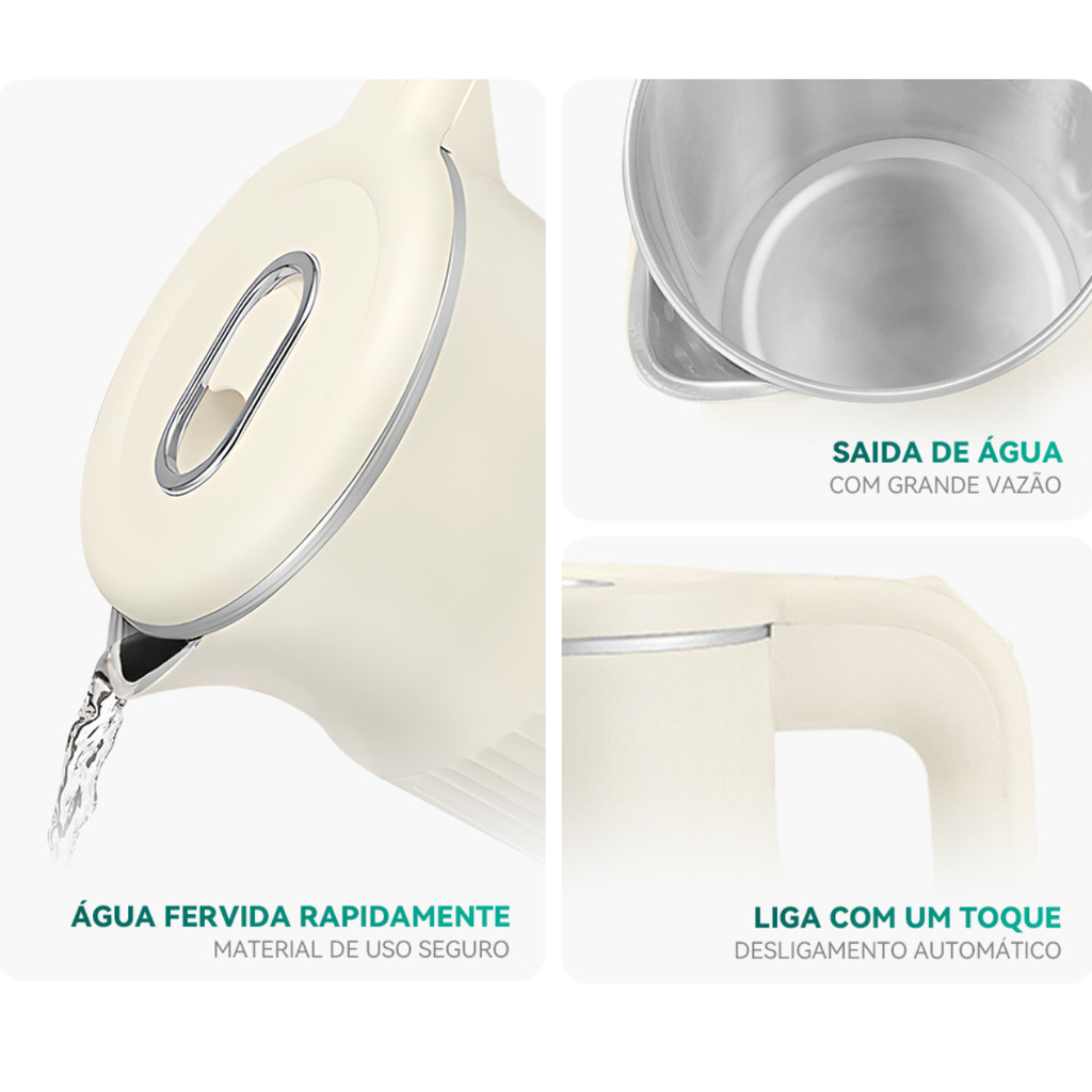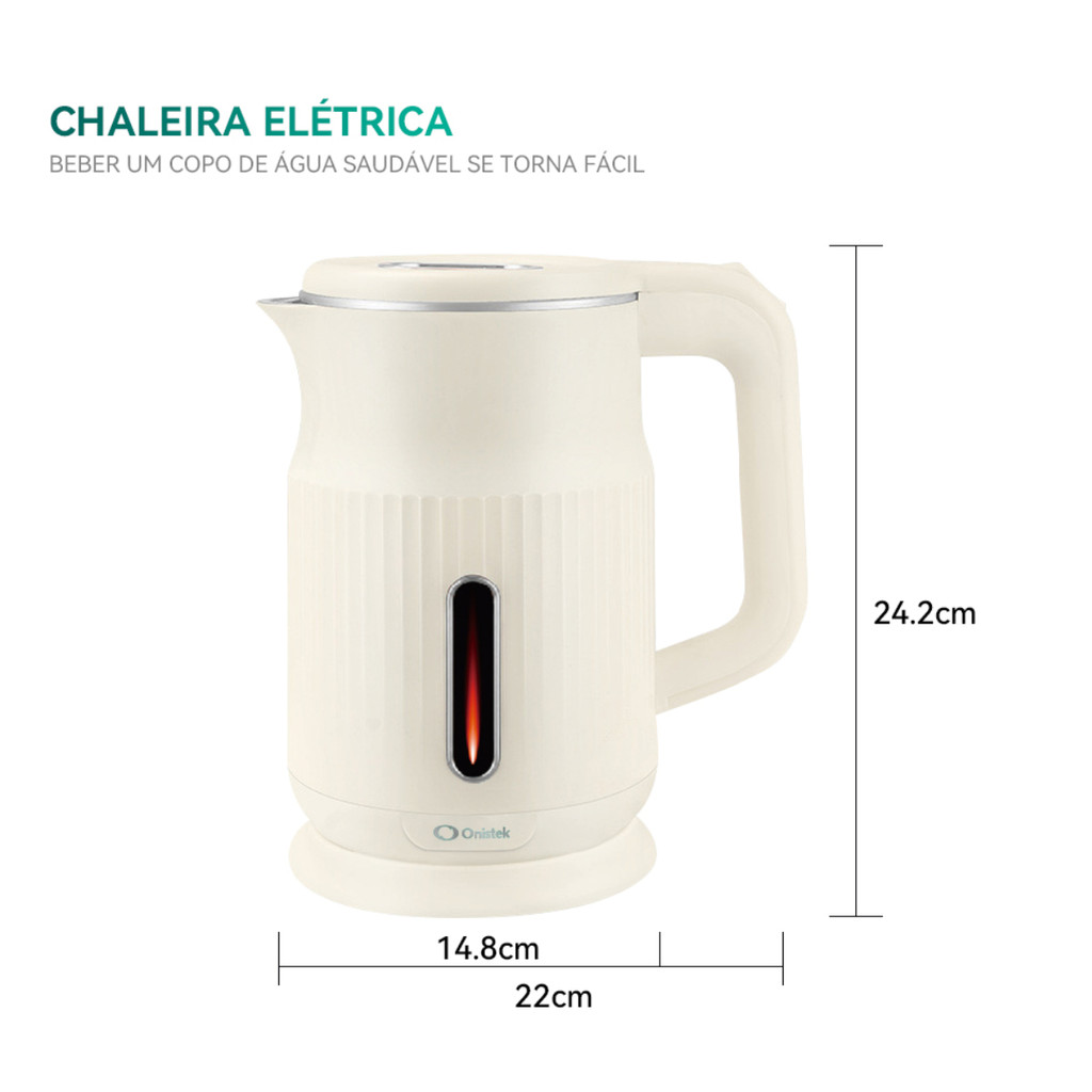 Chaleira Elétrica 1,6L Aço Ferve Rápido Desliga Automático 110V 220V ON-CL202