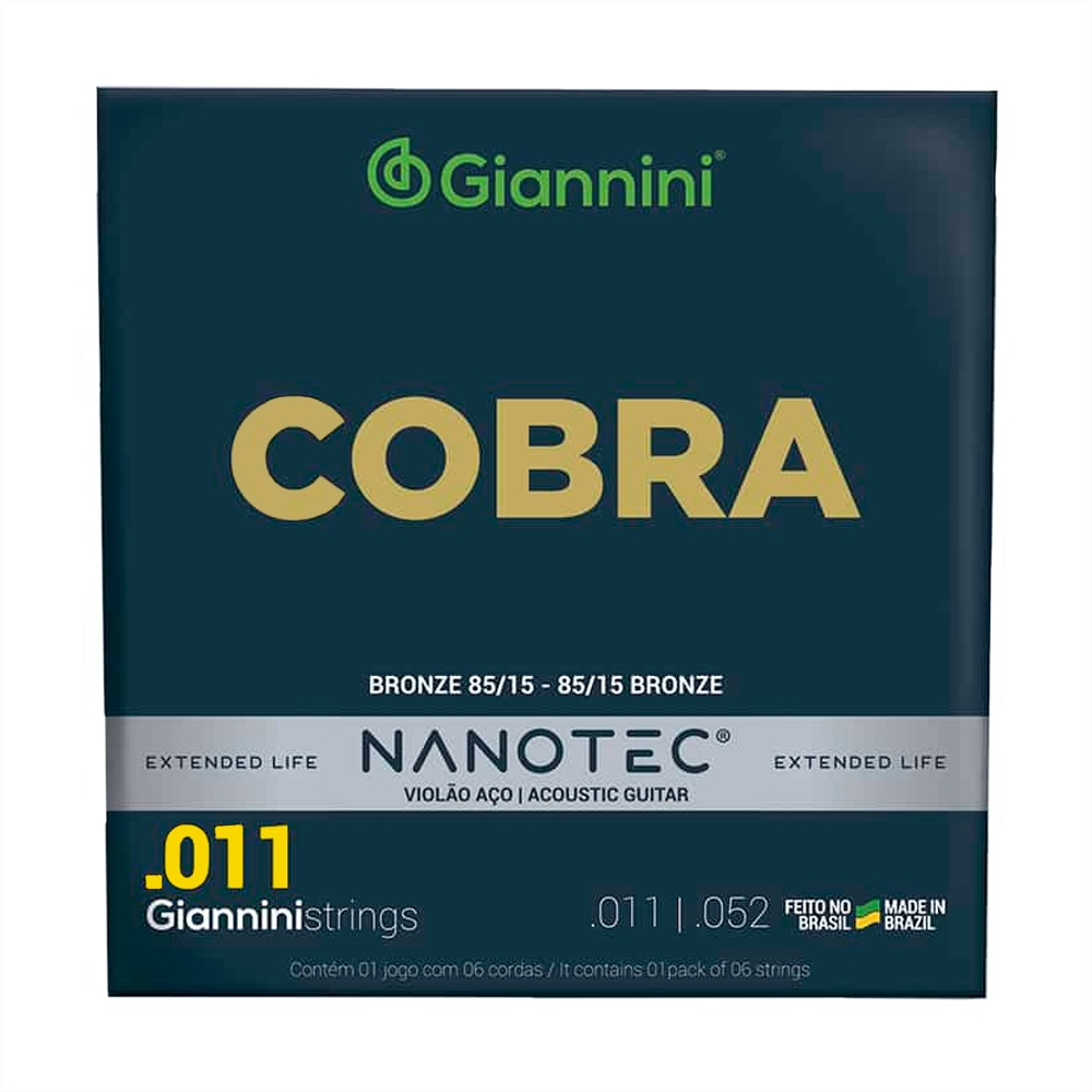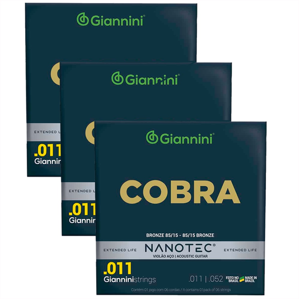 Kit 3 Cordas Giannini Cobra Nanotec Revestida 011 Violao Aco