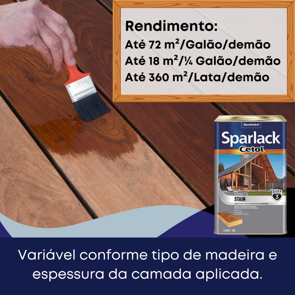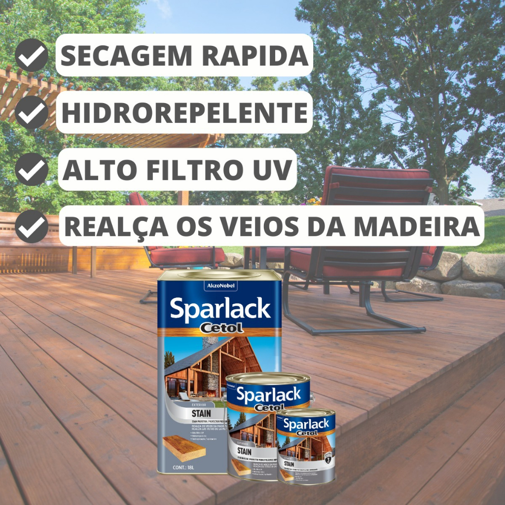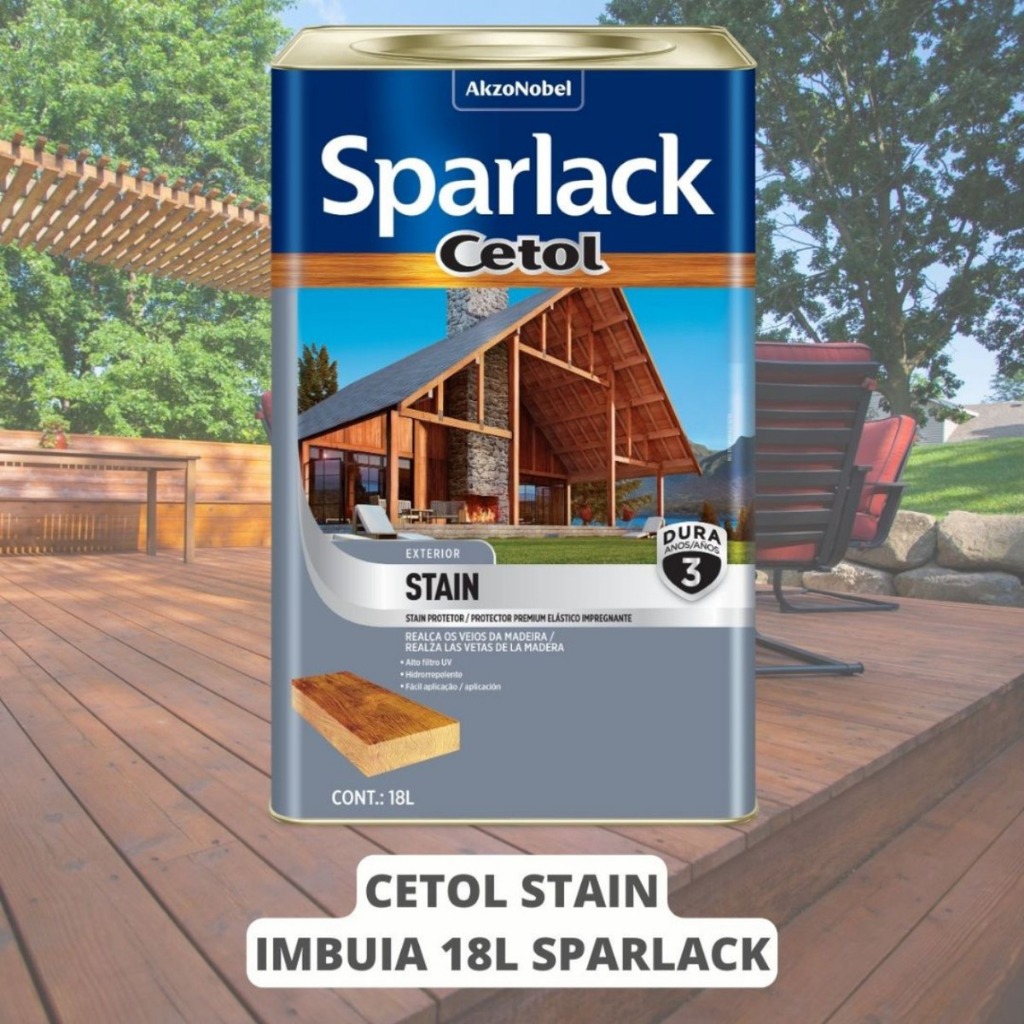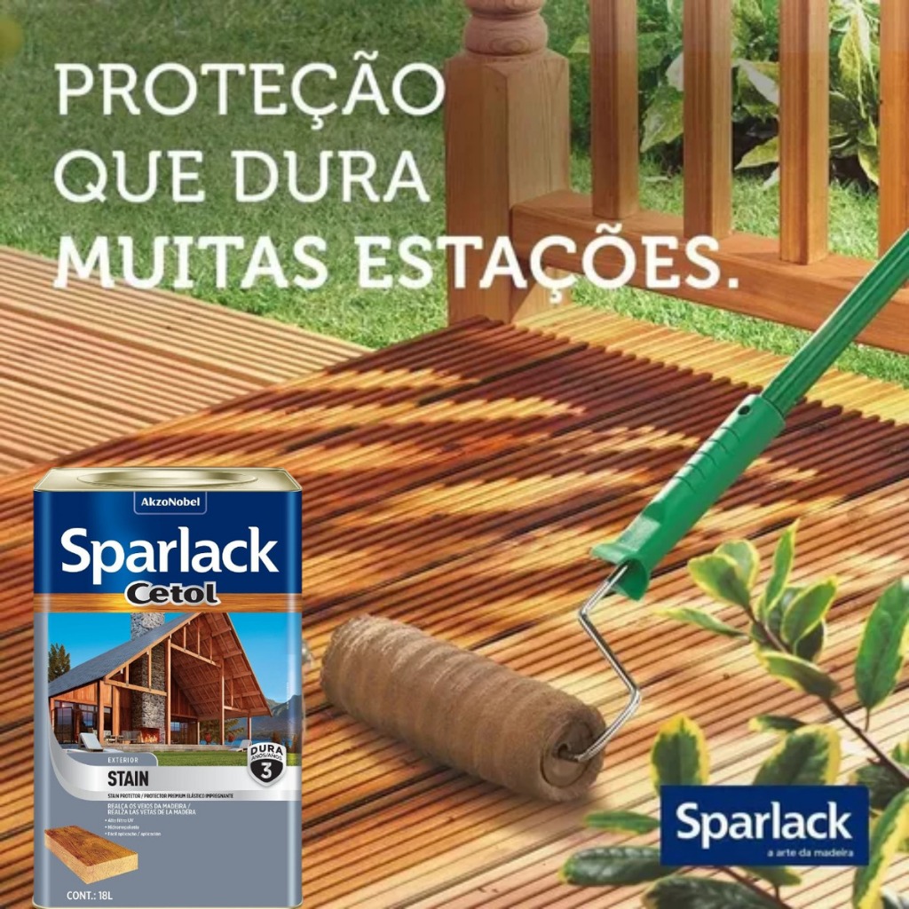 Cetol Stain Natural Acetinado Base Solvente Sparlack 18 litros 3 Anos Protetor para Madeira e Decks