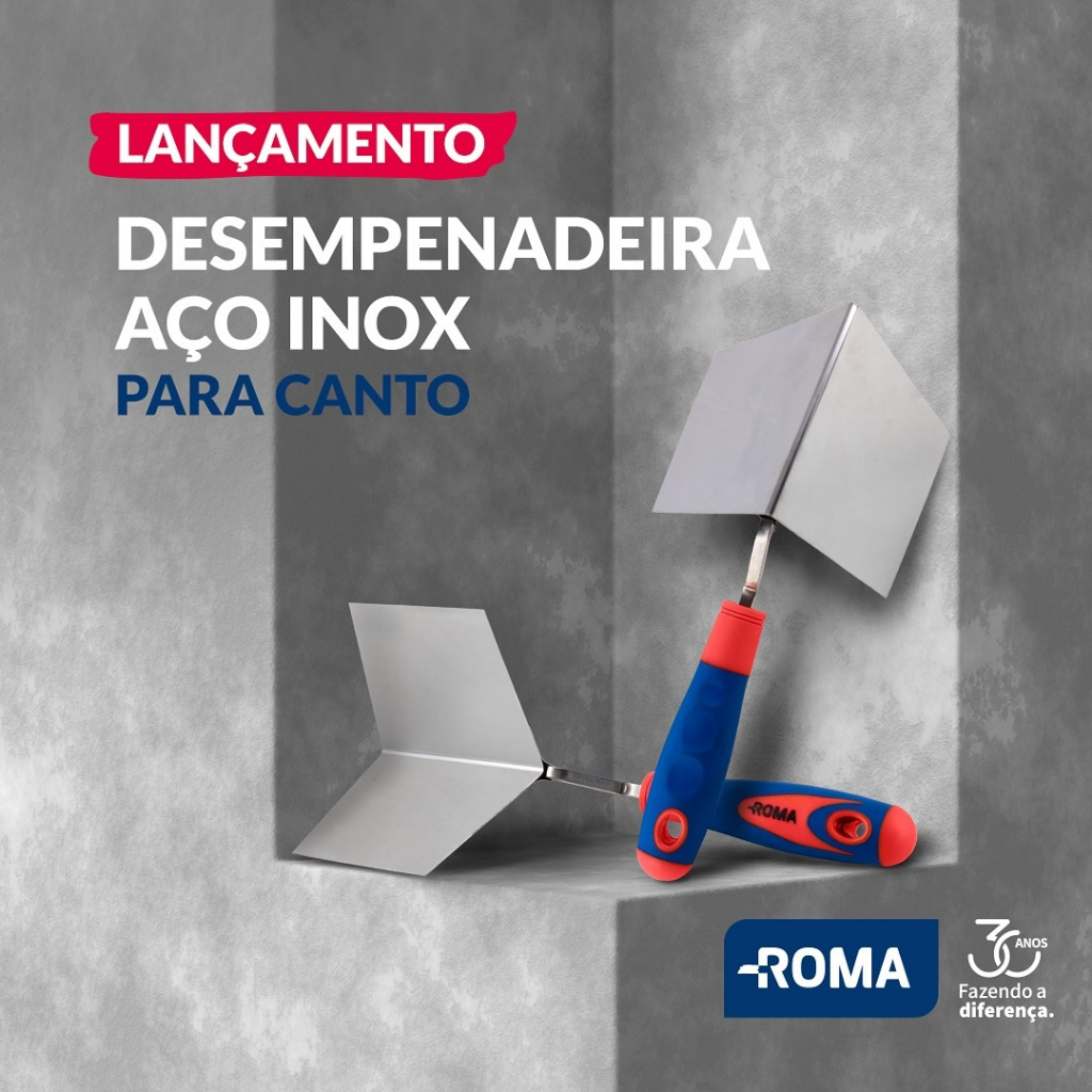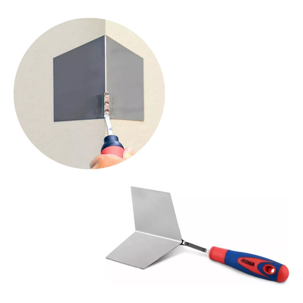 Kit Roma Desempenadeira Aço Inox para Canto Externo e Interno Cabo Emborrachado