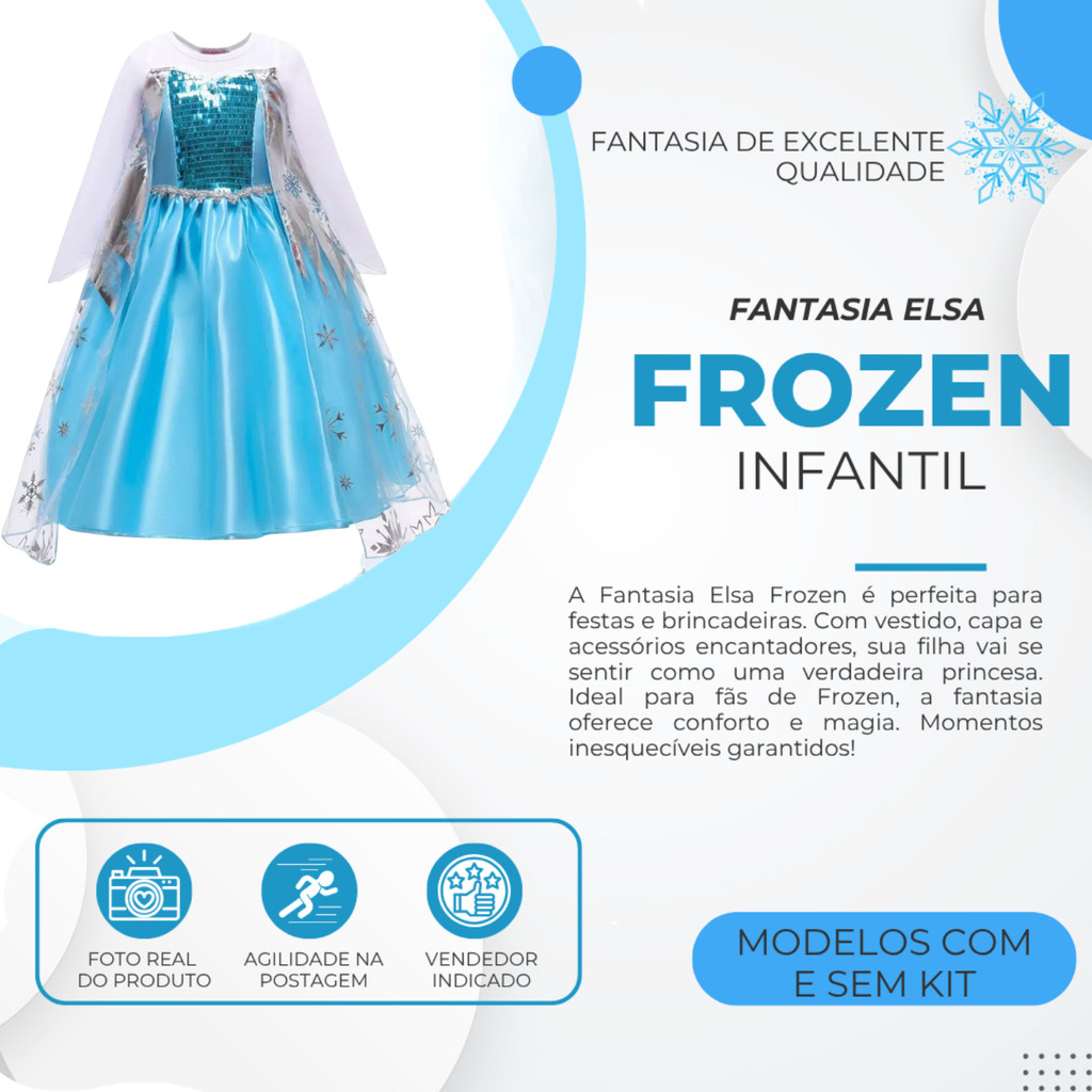 Fantasia Vestido Infantil COSPLAY Elsa Frozen Com Capa E Acessórios Festa Crianças