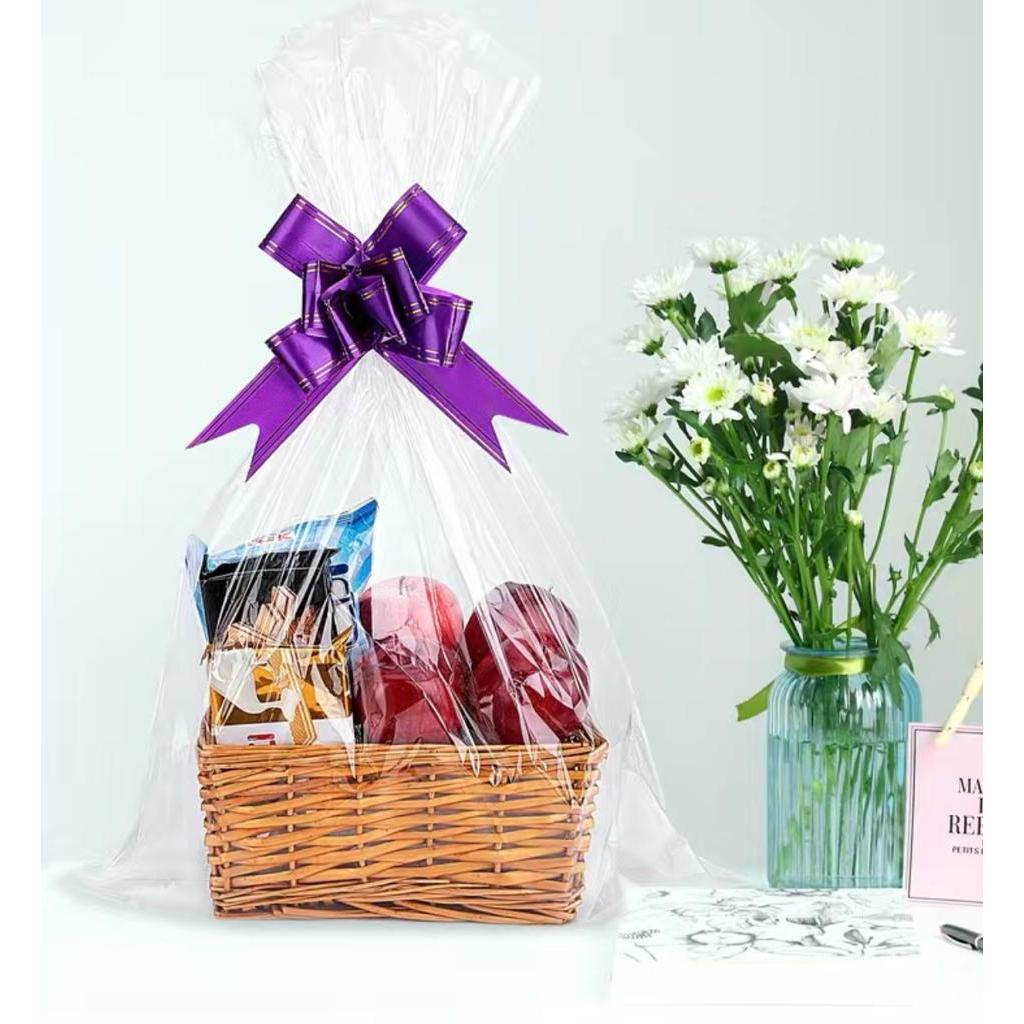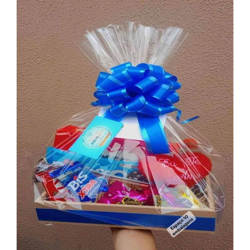 kit 10 saco + 10 laço para cesta de presente saco tipo celofane cristal das mães dia dos namorados comemorações em geral