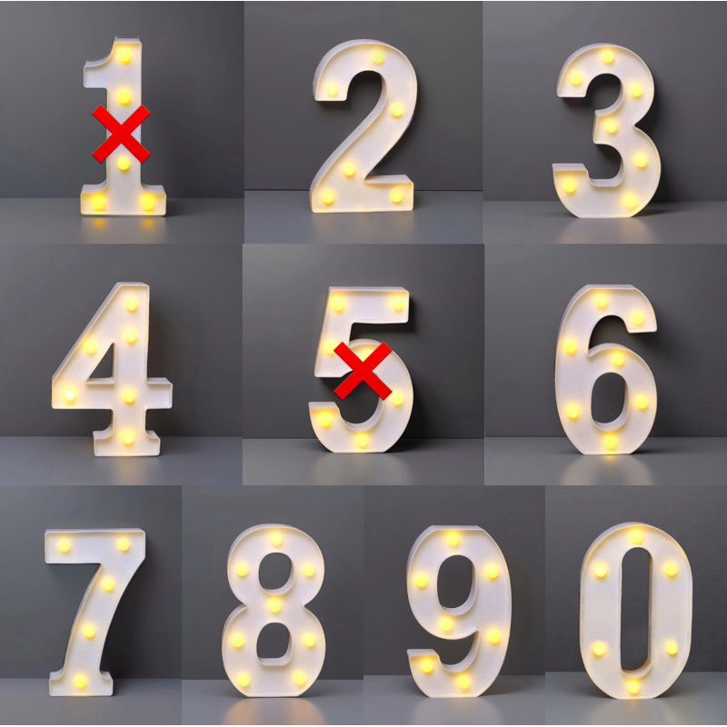 KIT 5 Números Led Luminária 3D Decorativa Branco 16cm/21cm