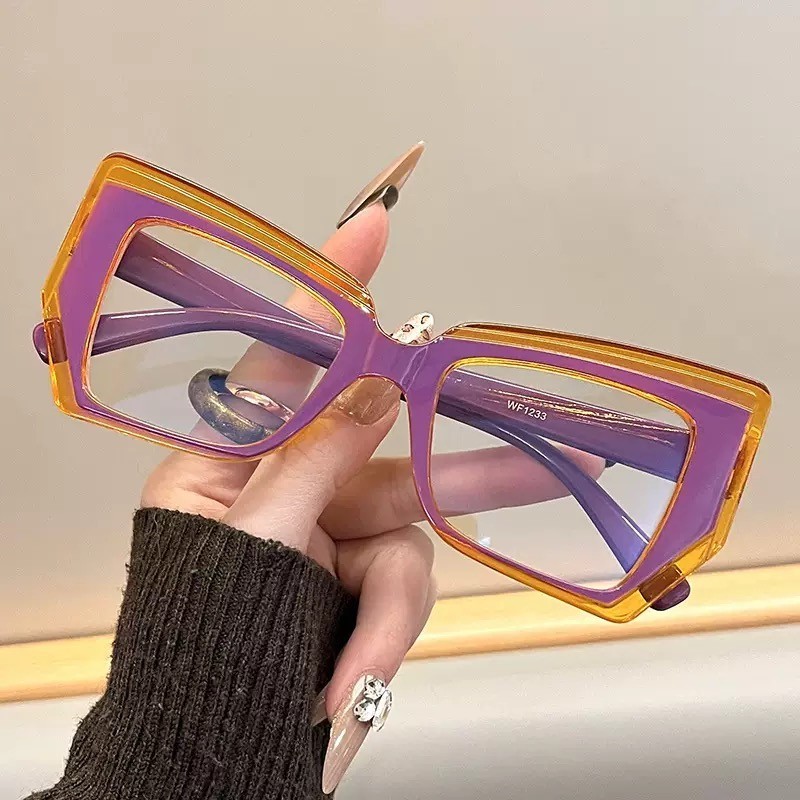 Novo Espelho Olho De Gato Plano Polígono Feminino Moda Retro Colorido Óculos Anti Luz Azul Para Mulheres Homens Quadro D
