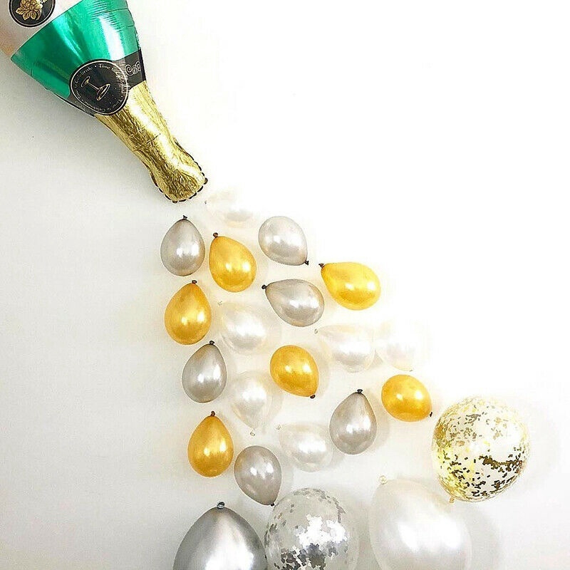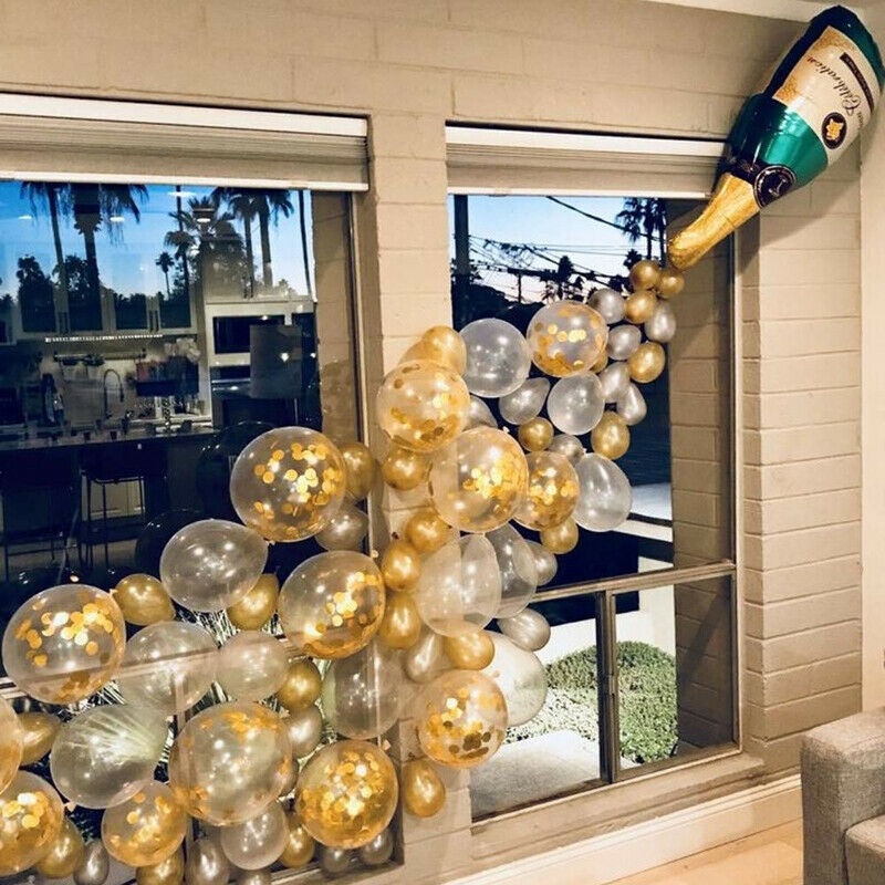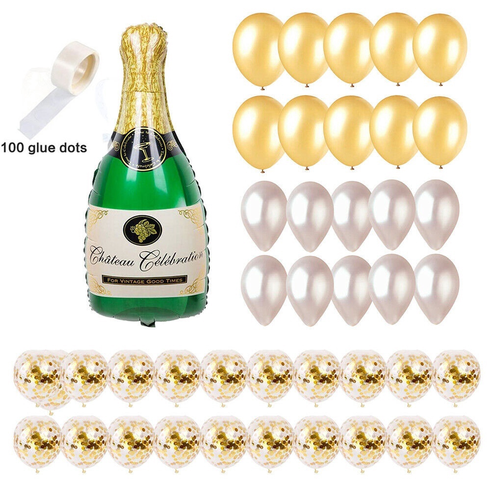 Kit de 42 peças balões de garrafa de champanhe + balão de látex ouro branco para decoração de festa de casamento