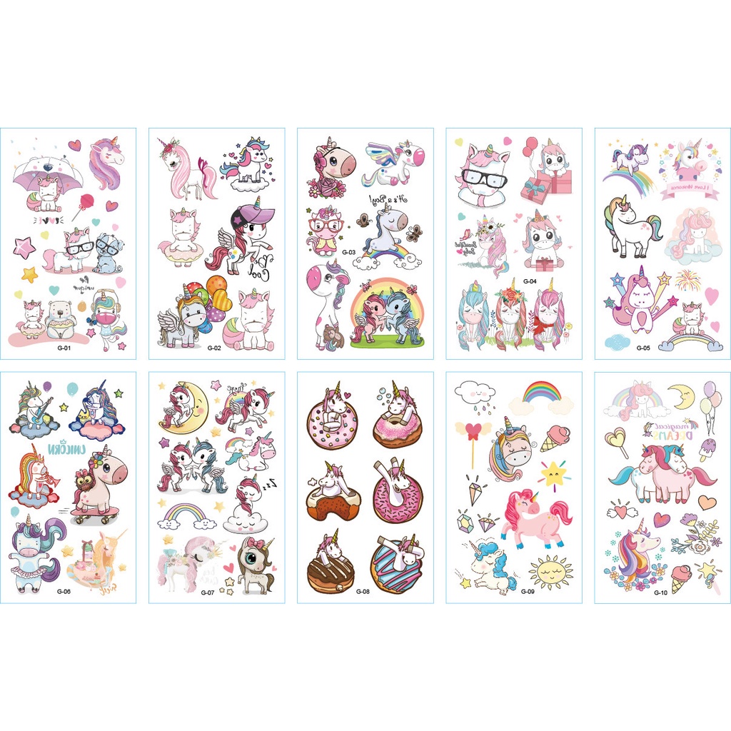 10 Peças De Etiqueta De Tatuagem Temporária De Unicórnio Tatuagens Removíveis Para Decoração De Festa De Aniversário De Tema De Unicórnio e Fontes De Decoração