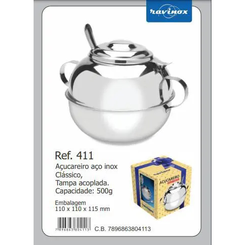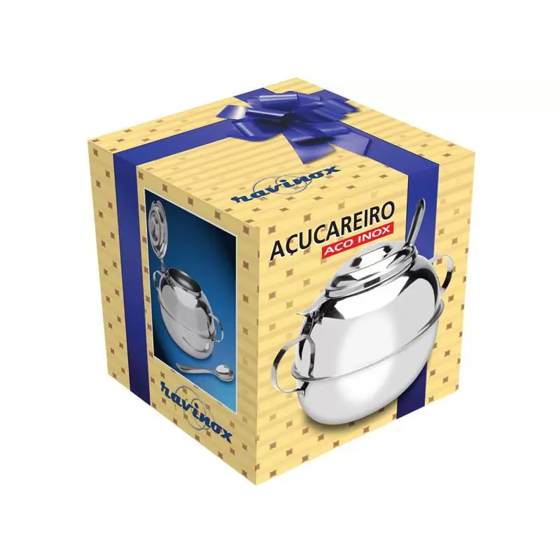 Açucareiro Grande 500g Em Inox Com Colher Para Cozinha Escritório