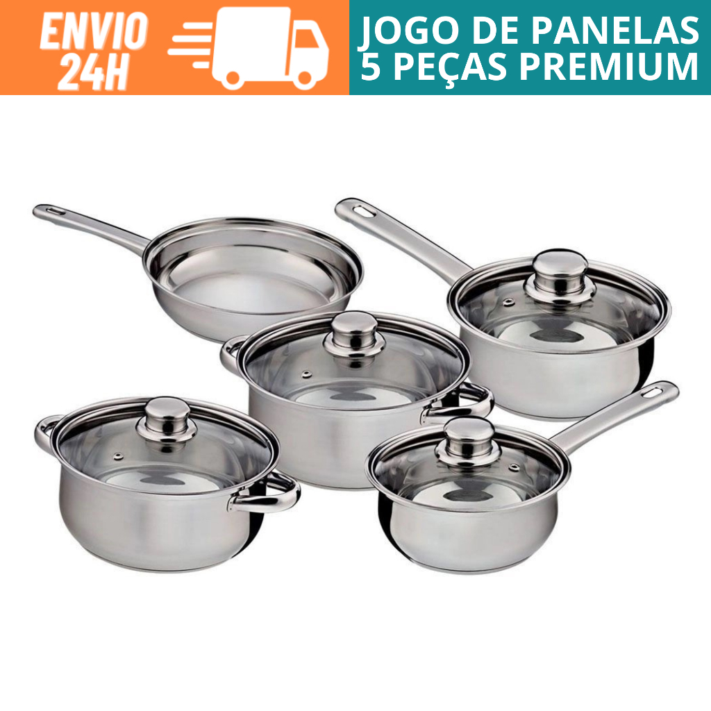 Conjunto Panelas Aço Inox 5 Peças Com Tampas De Vidro Jogo Completo Para Sua Cozinha
