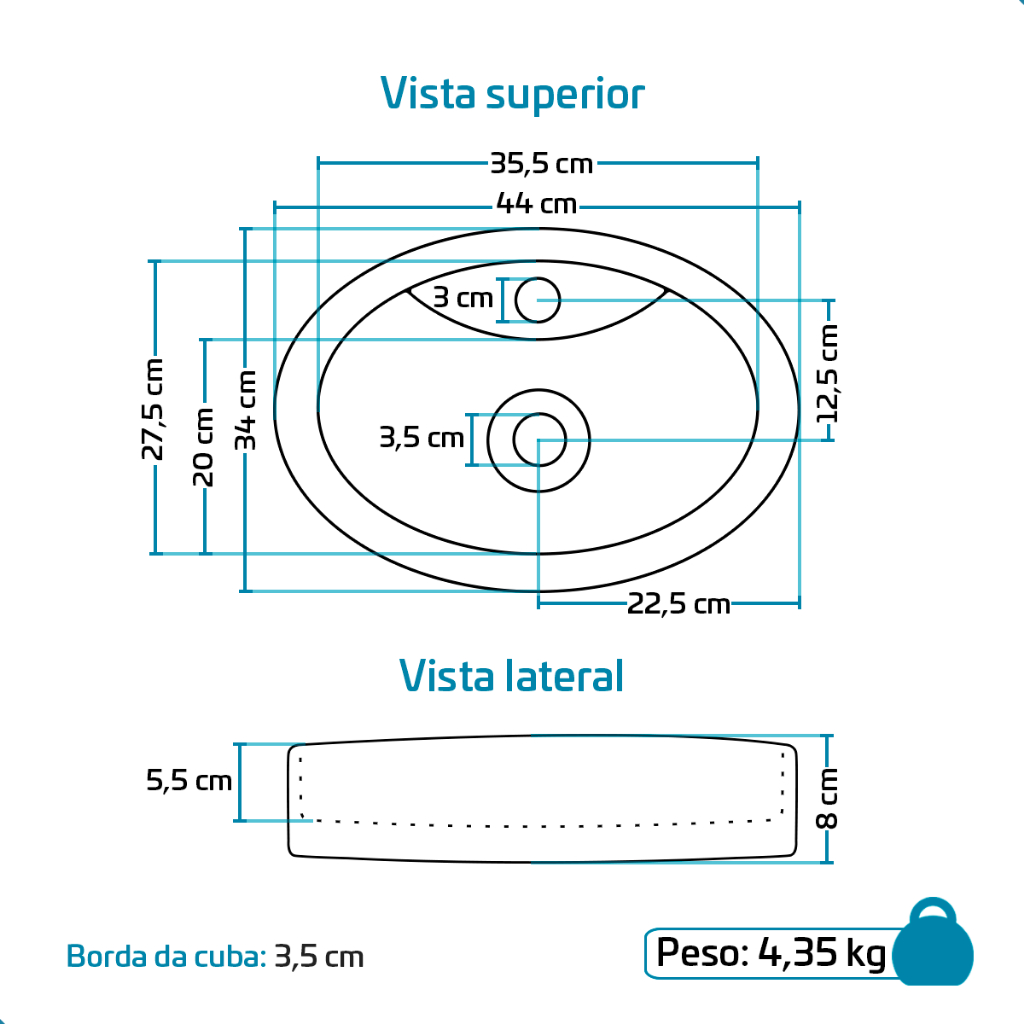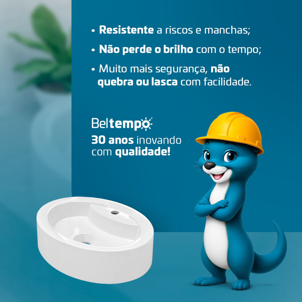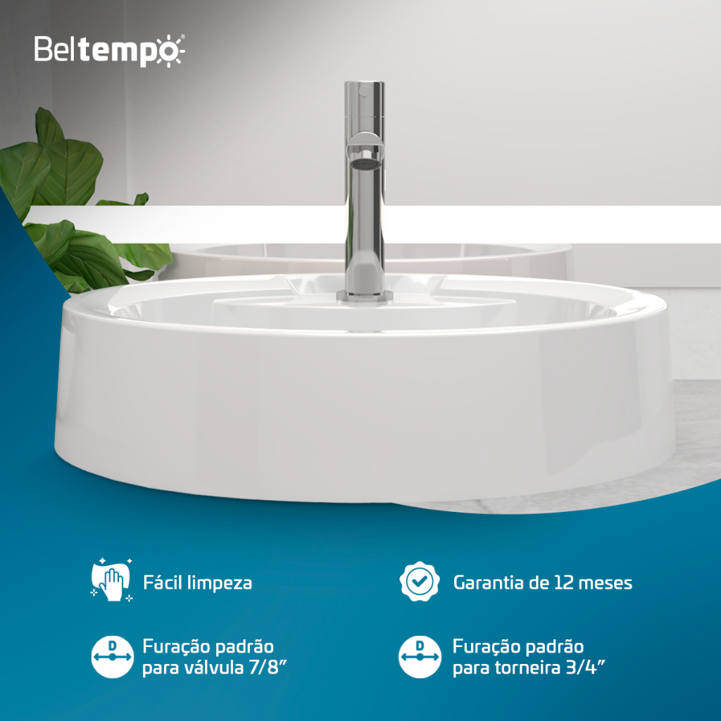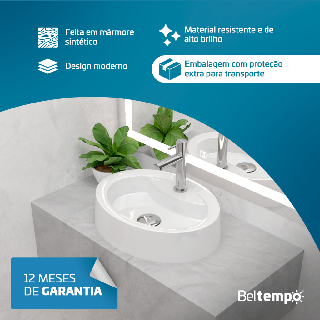 Cuba Pia de Apoio Sobrepor Oval 44x34 Branca Banheiro Lavabo Beltempo BT-2074