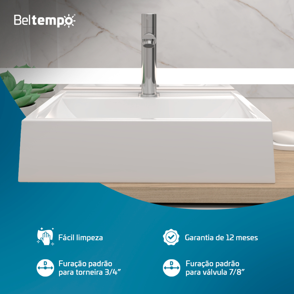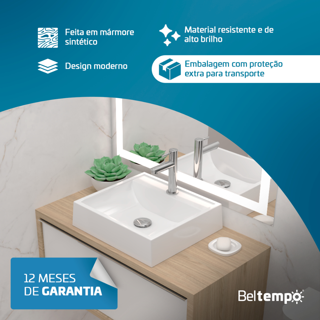 Cuba Pia de Apoio Sobrepor Quadrada 40x37 Branca Banheiro Lavabo Beltempo BT-2003