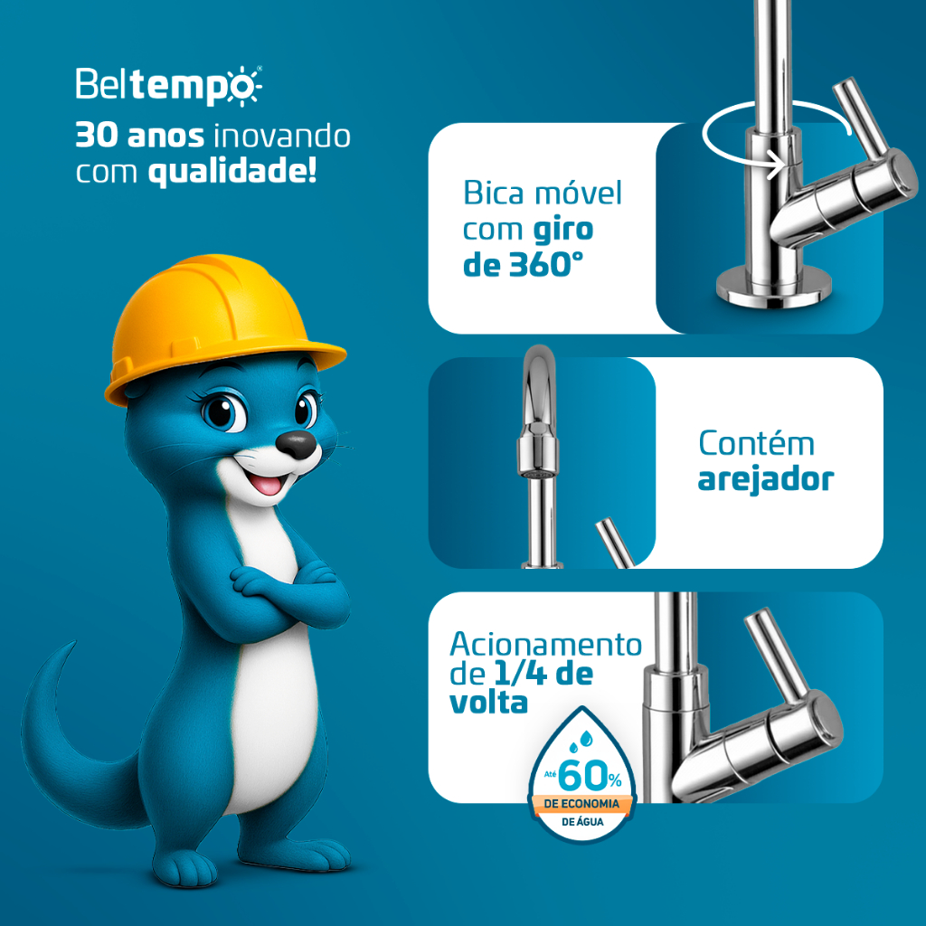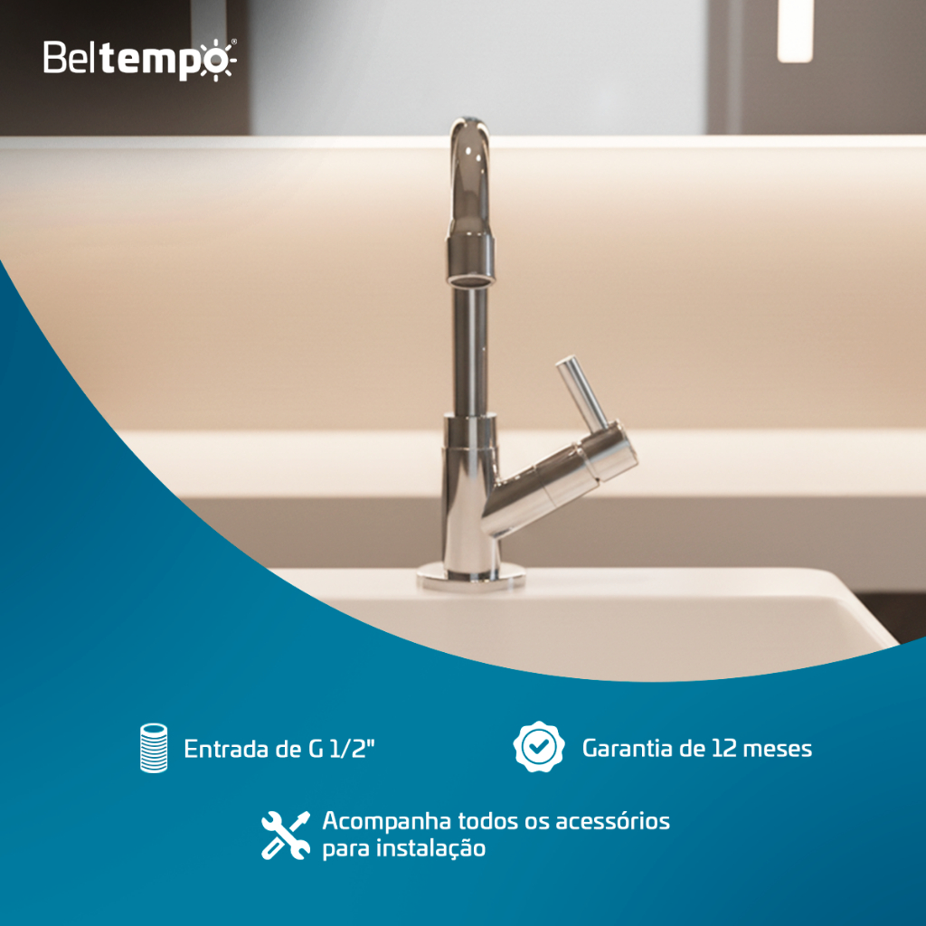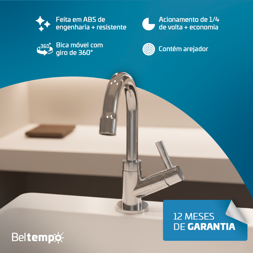 Torneira para Banheiro Lavabo Bica Baixa Bancada ABS Cromada Beltempo