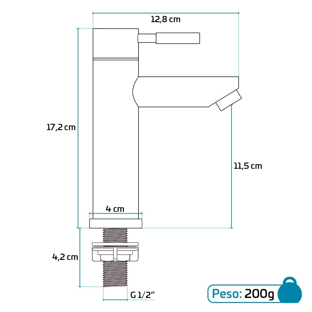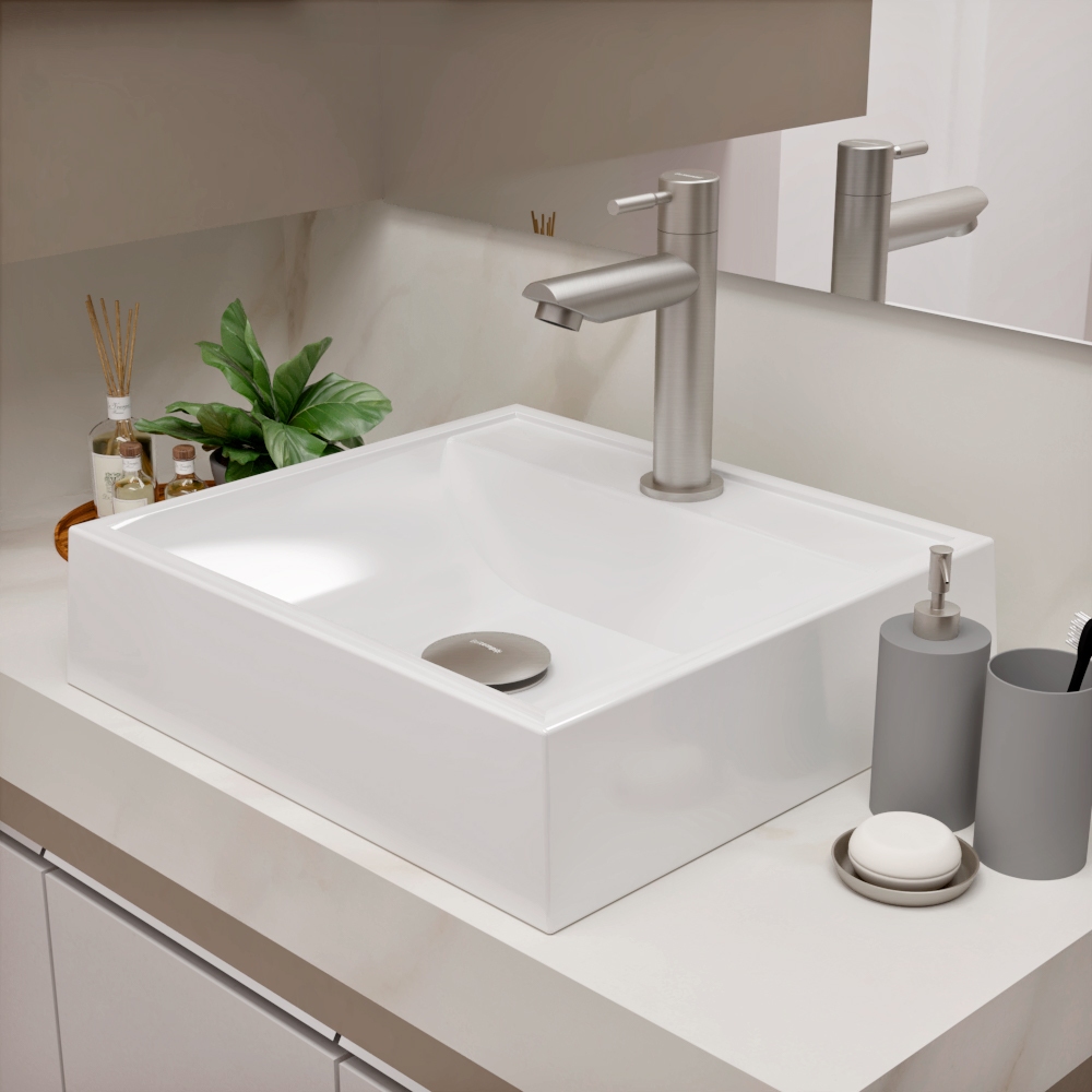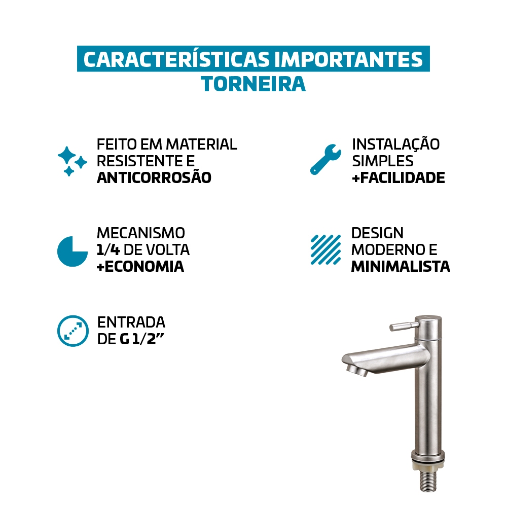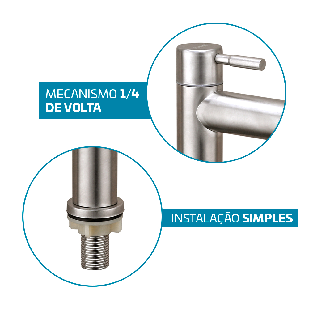 Torneira Para Banheiro De Mesa Bica Baixa 1/4 De Volta Aço Inox 304 Elegance Beltempo
