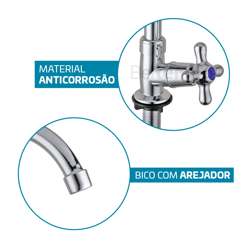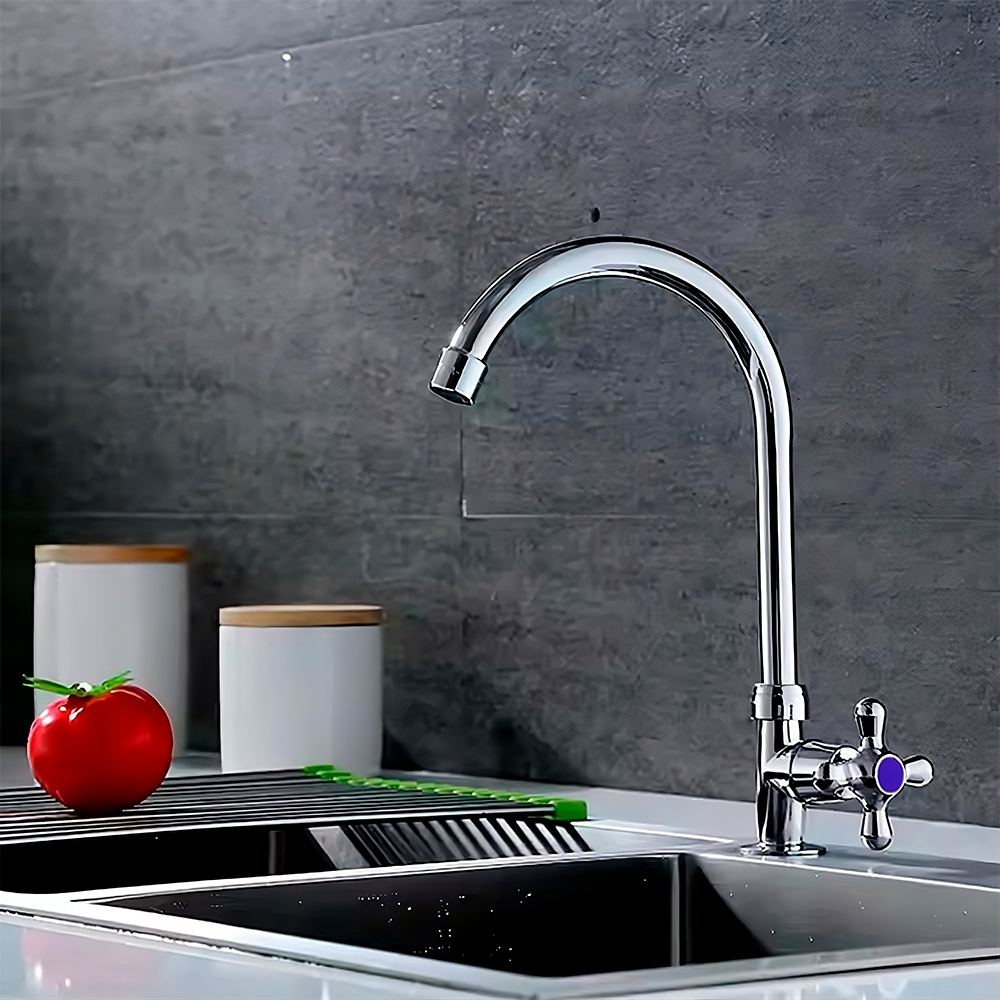 Torneira Para Cozinha De Mesa 1/4 De Volta Bica Móvel Aço Inox/abs Cromada Classic Beltempo