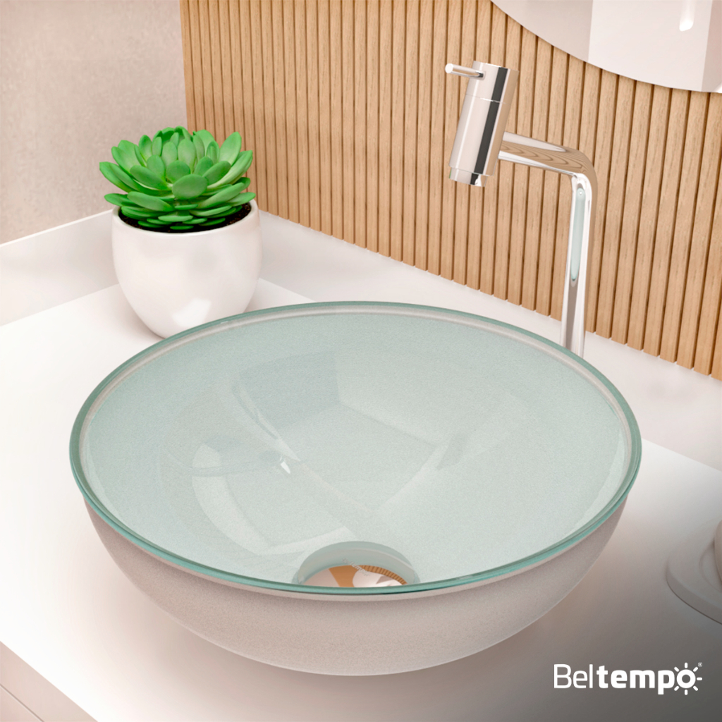 Cuba Pia de Apoio Sobrepor Vidro Redonda 29cm Banheiro Lavabo Beltempo BT-4030