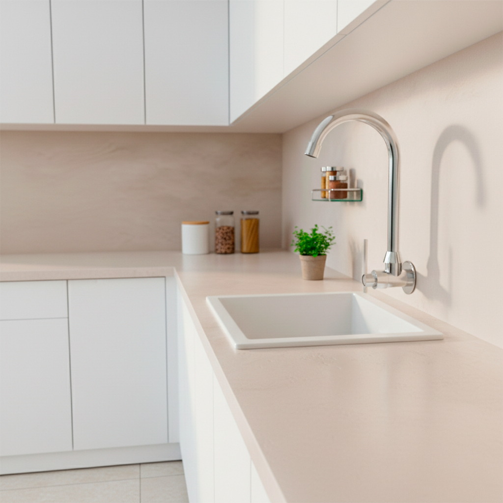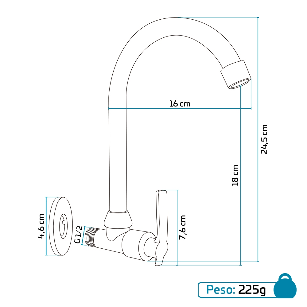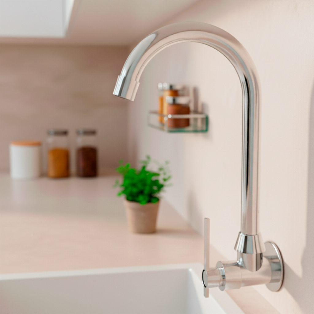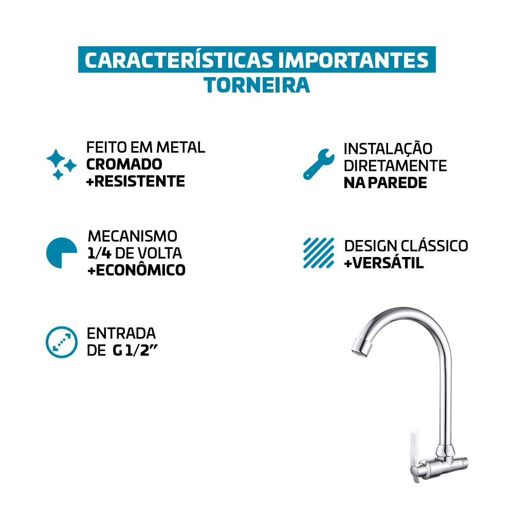 Torneira Para Cozinha De Parede 1/4 De Volta Bica Móvel Metal Cromada Classic Beltempo