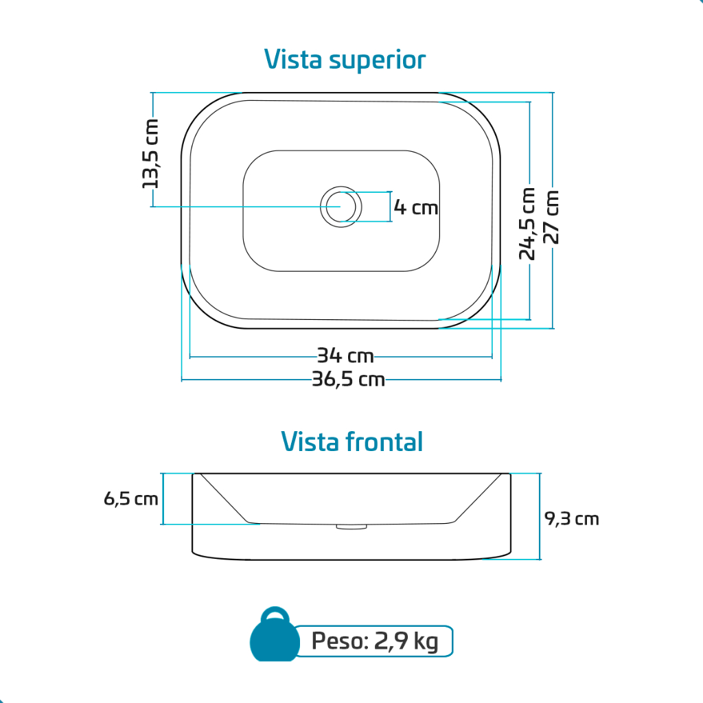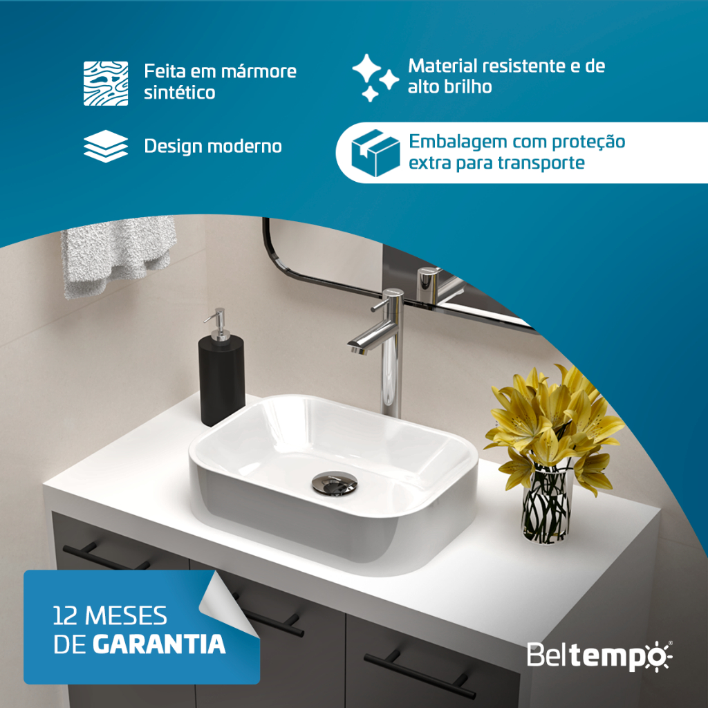Cuba Pia De Apoio Sobrepor Retangular 37x27 Para Banheiro Lavabo Beltempo BT-2010