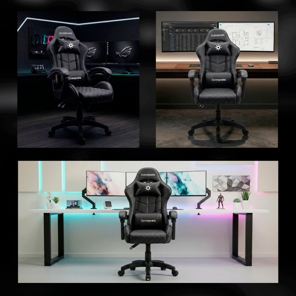 Cadeira Gamer Belmóveis Confort BM4 Reclinável 150 Graus Ergonômica Giratória Couro PU Almofadas