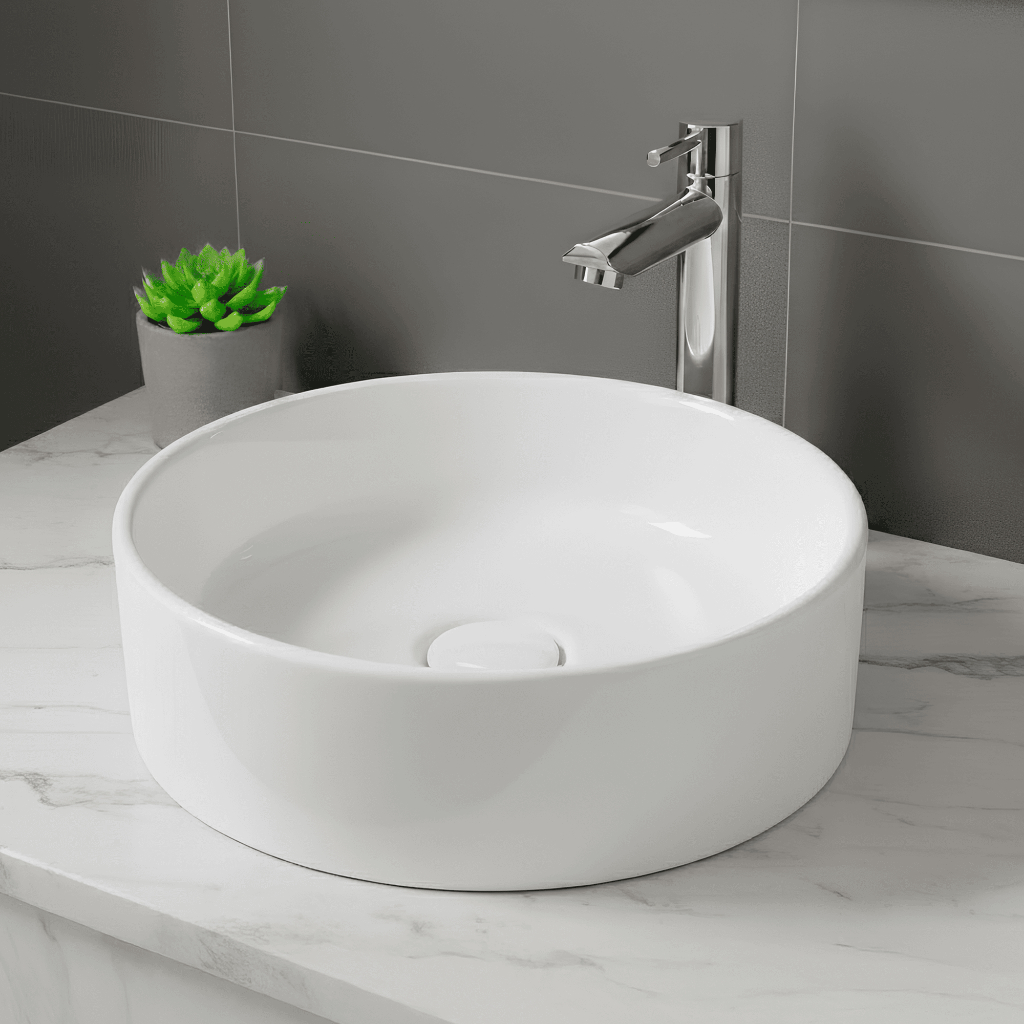 Cuba Pia de Apoio Redonda 40cm Slim Branca Banheiro Lavabo Beltempo BT-2845