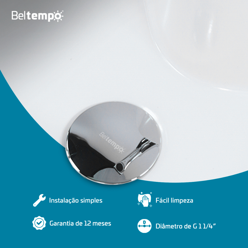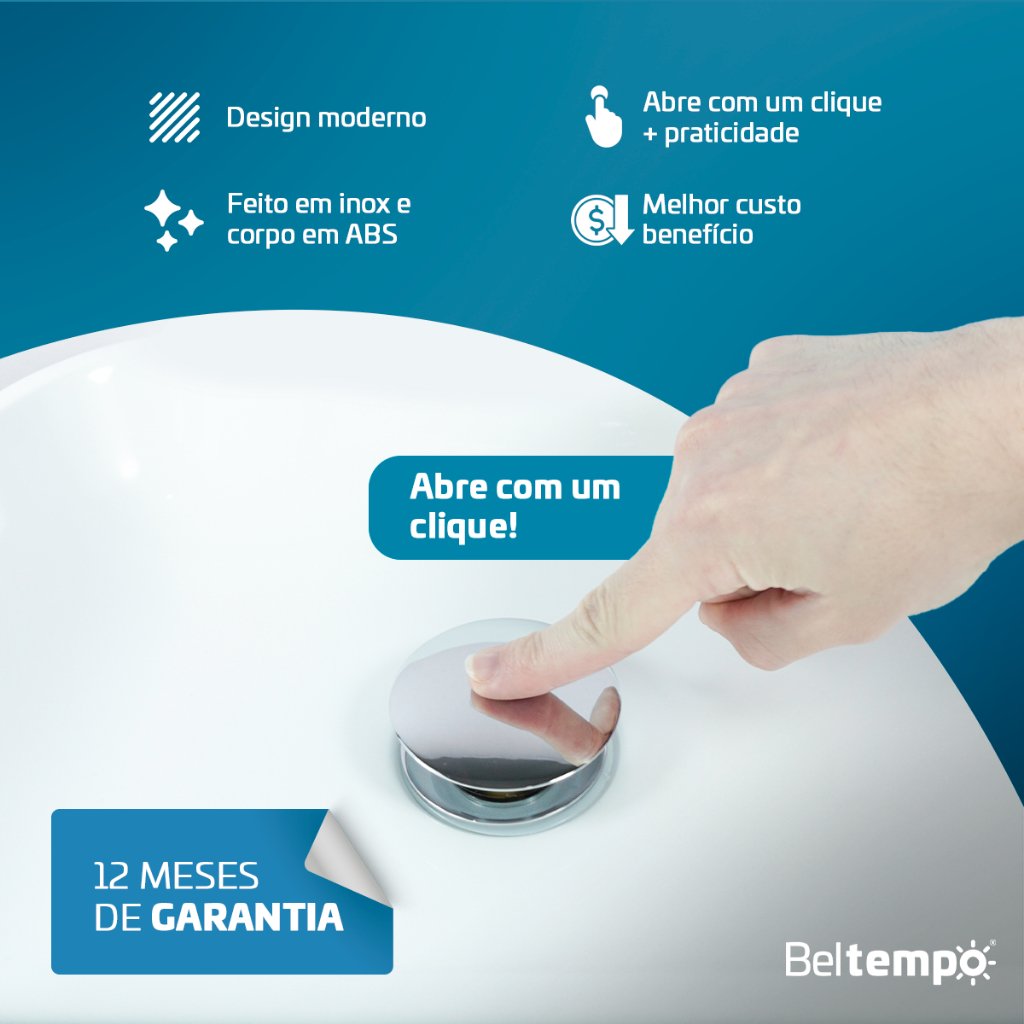 Válvula Click 1 1/4" Ralo Cuba Pia Banheiro Inox Cromada Beltempo