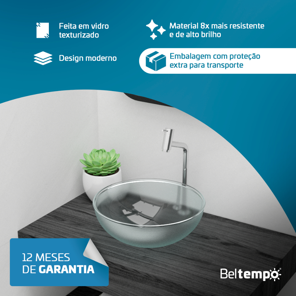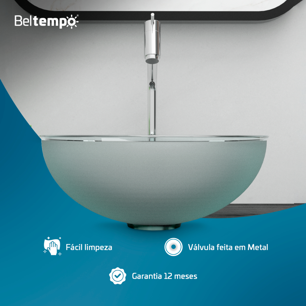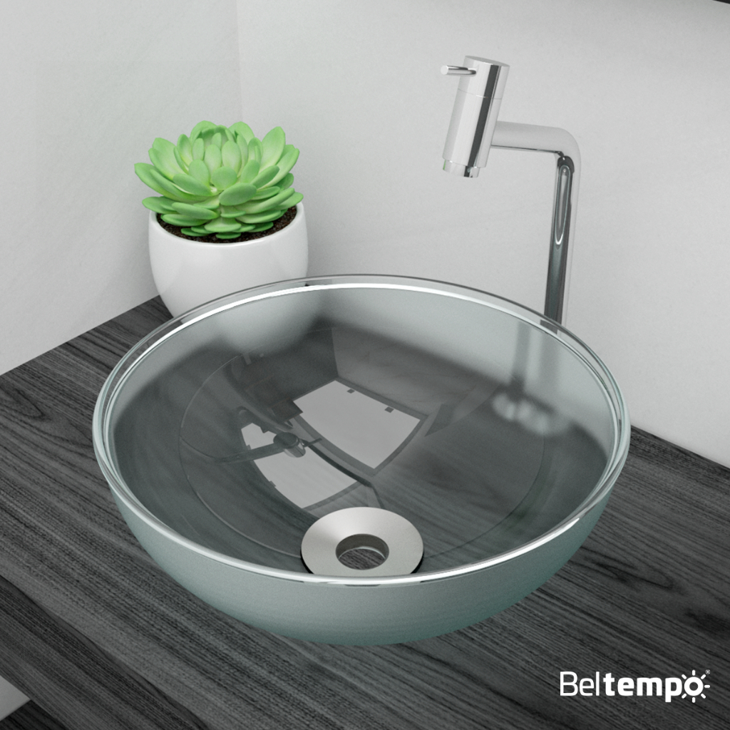 Cuba Pia de Apoio em Vidro Redonda 29cm para Banheiro + Válvula Beltempo