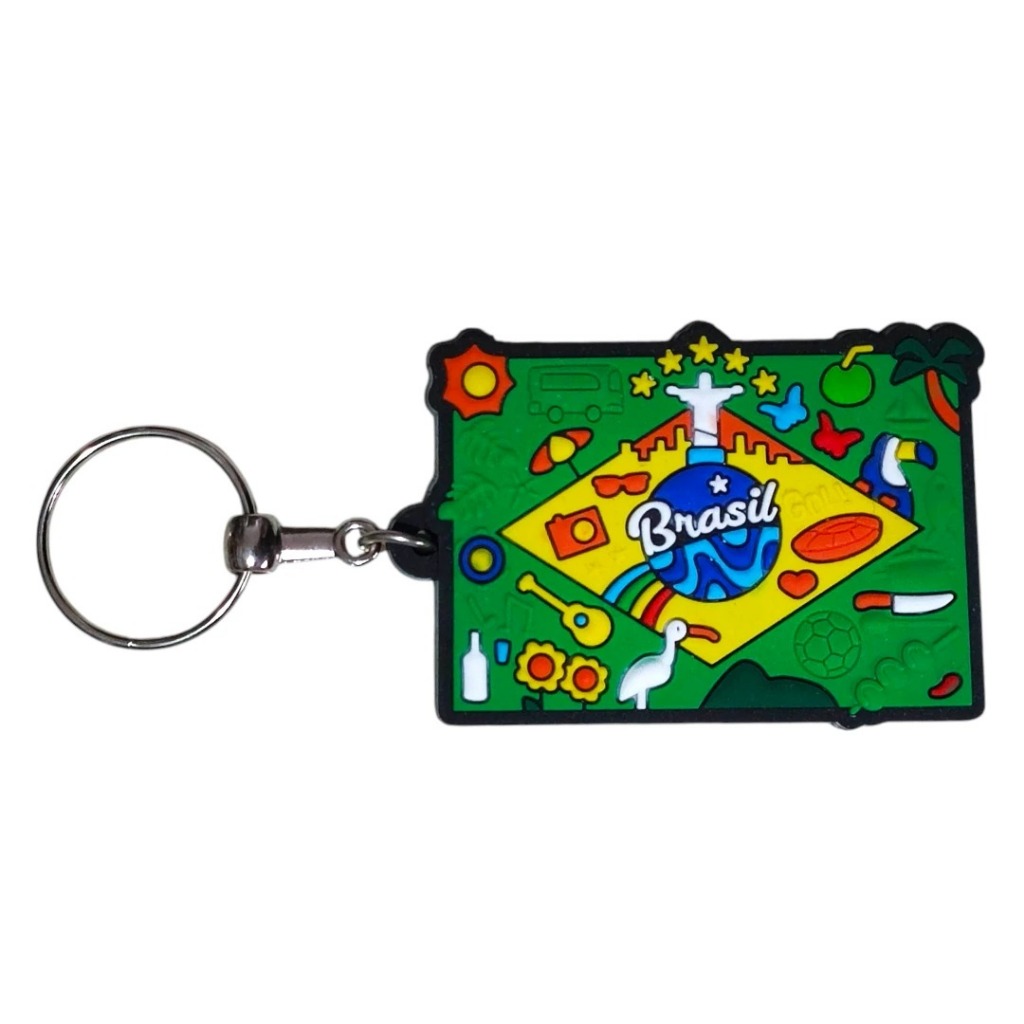 Argola Chaveiro Emborrachado Brasil e Símbolos de suas belezas cristo redentor carnaval Amazônia praias futebol