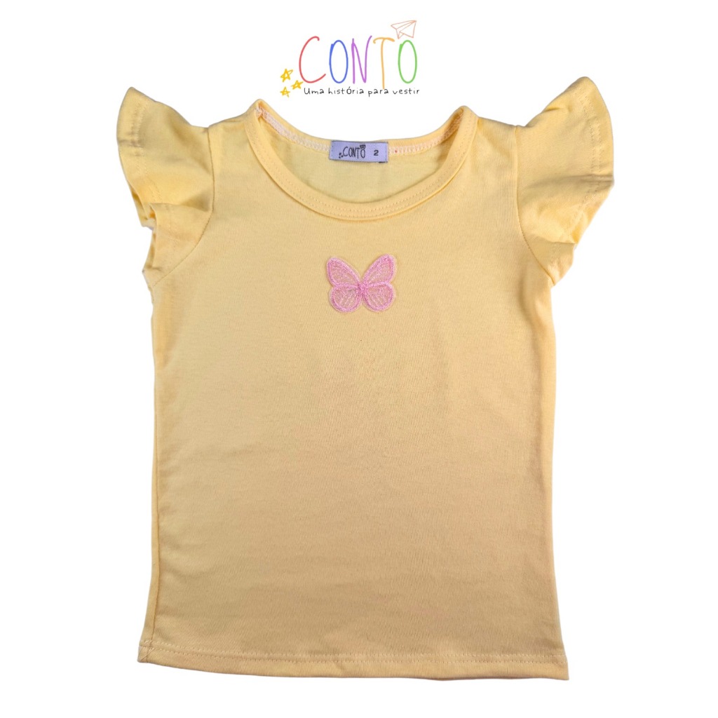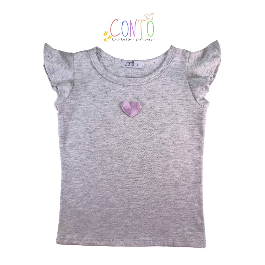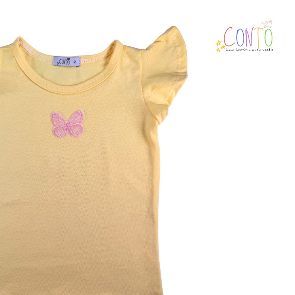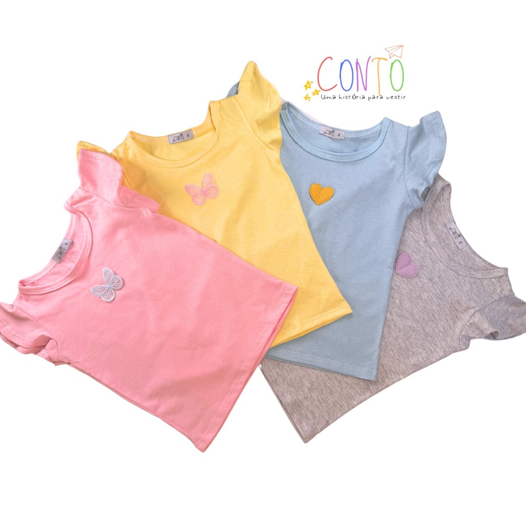 blusa manga curta infantil menina kit 3 peças colorida com aplique