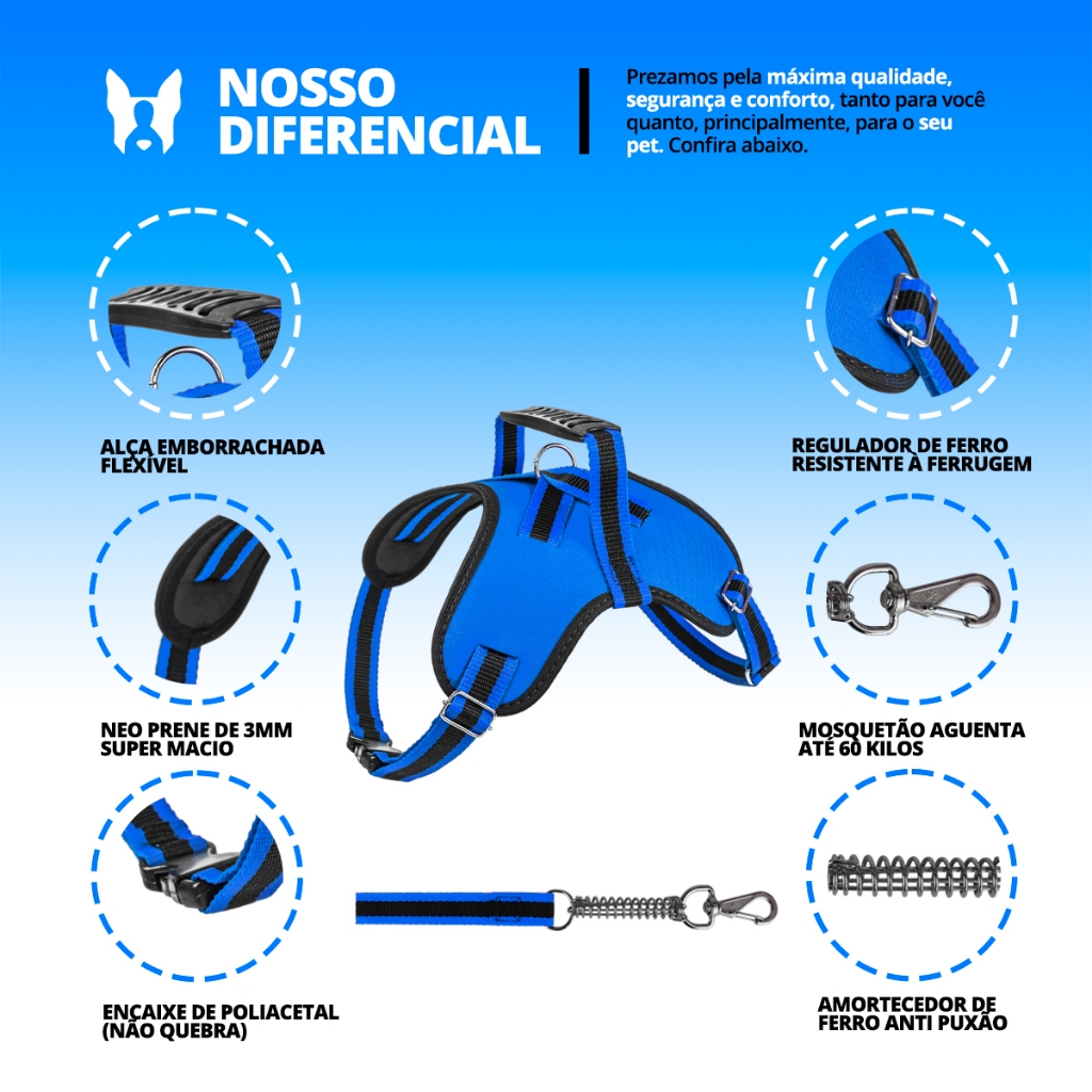 coleira e Guia para cachorro nome personalizado coleira peitoral conforto peiteira sistema amortecedor impacto regulagem