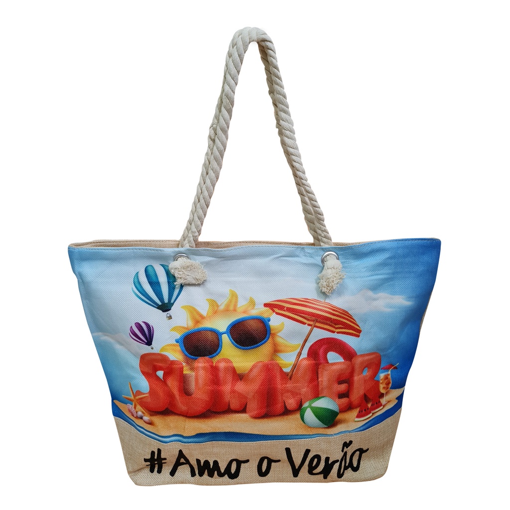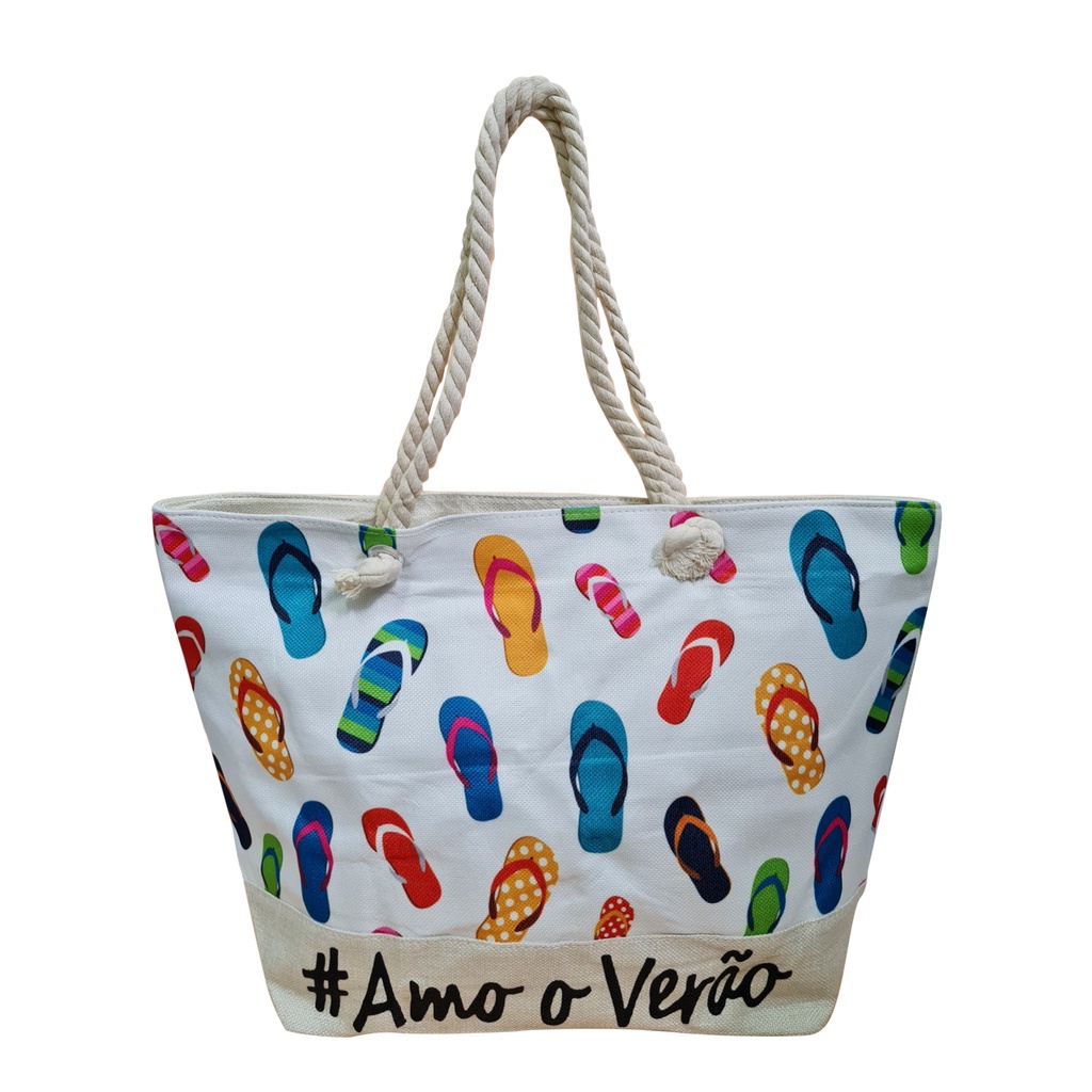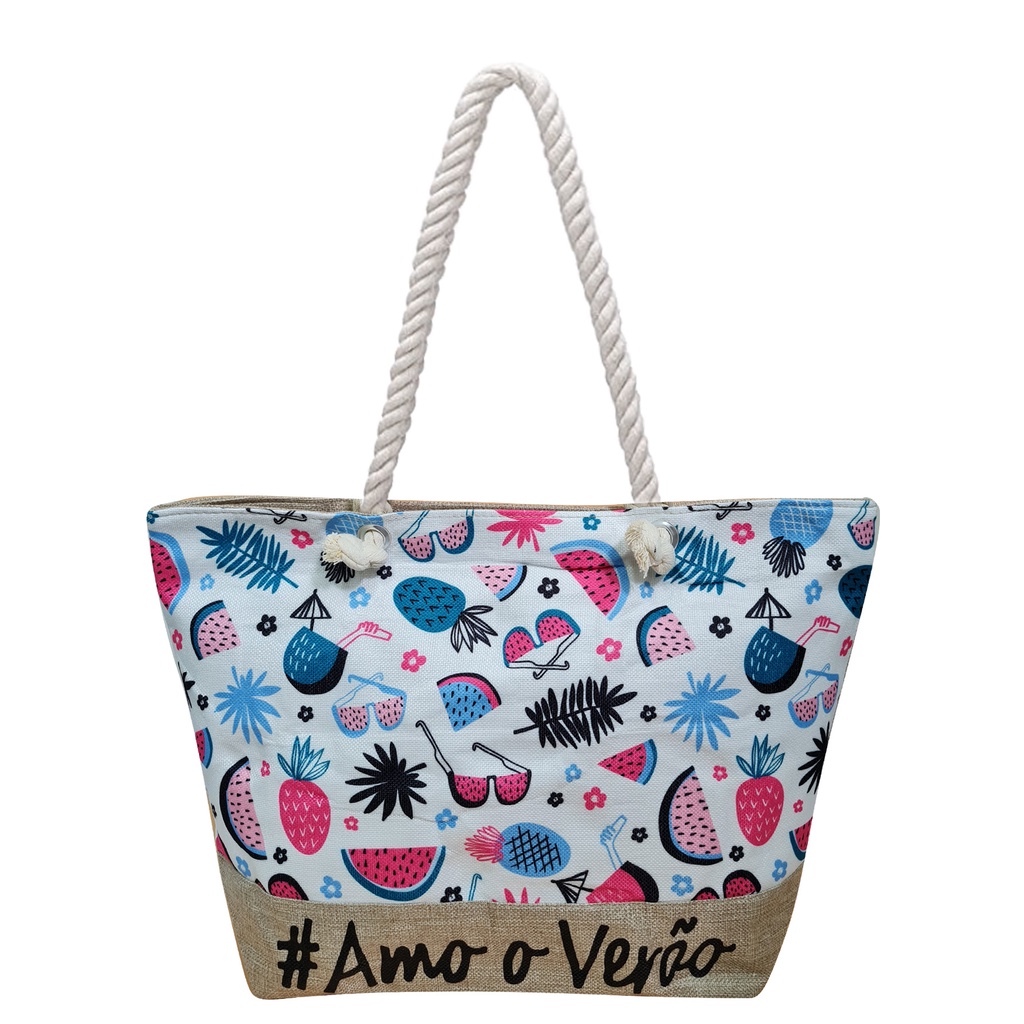 Bolsa Praia Piscina 12 Modelo Sacola Tecido Cores Variadas Feminina Amo Verão