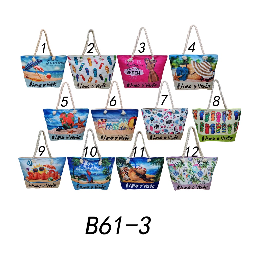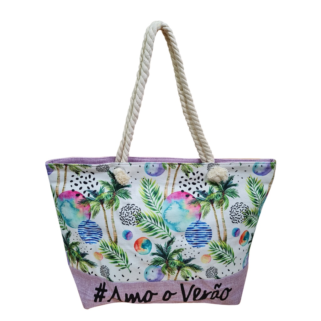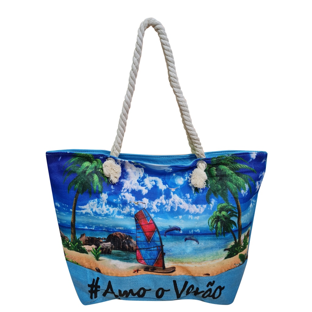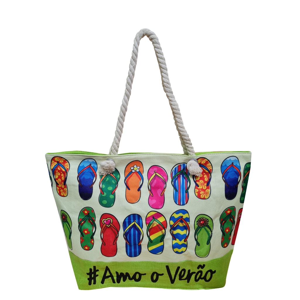 Bolsa Praia Piscina 12 Modelo Sacola Tecido Cores Variadas Feminina Amo Verão