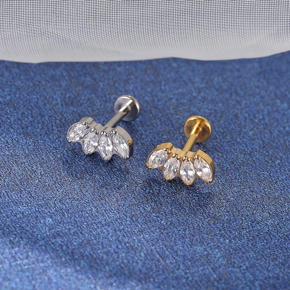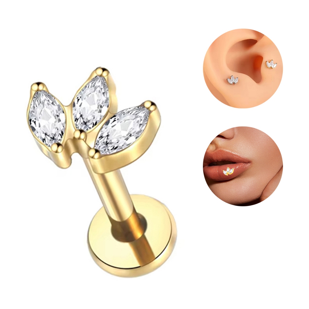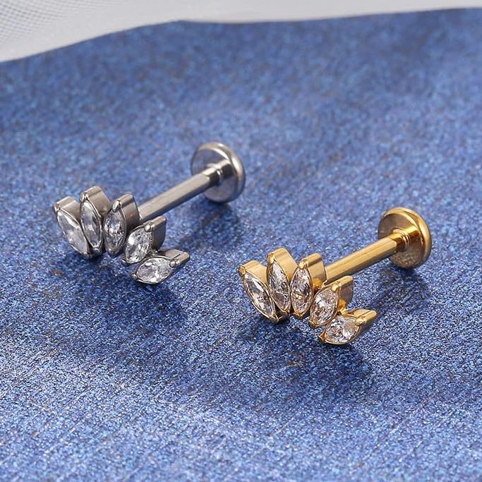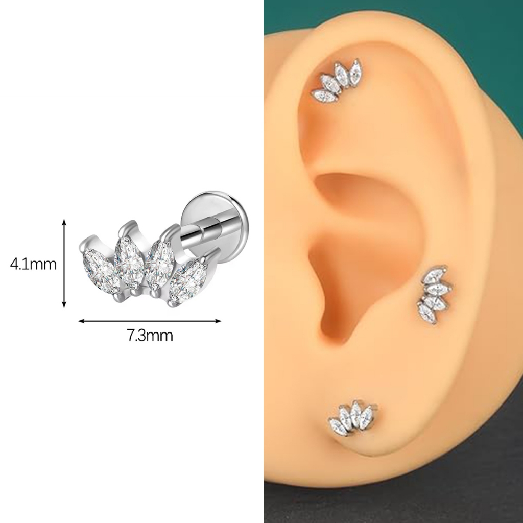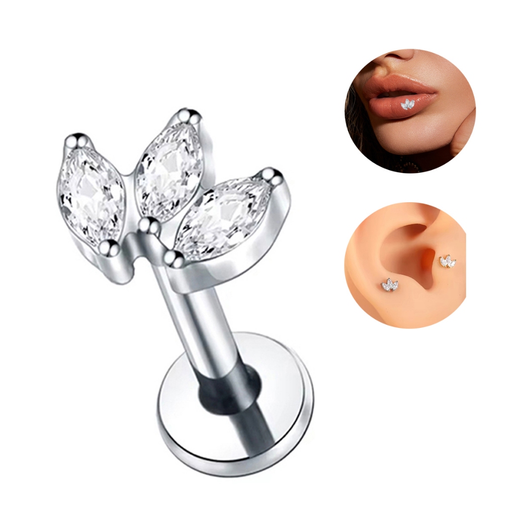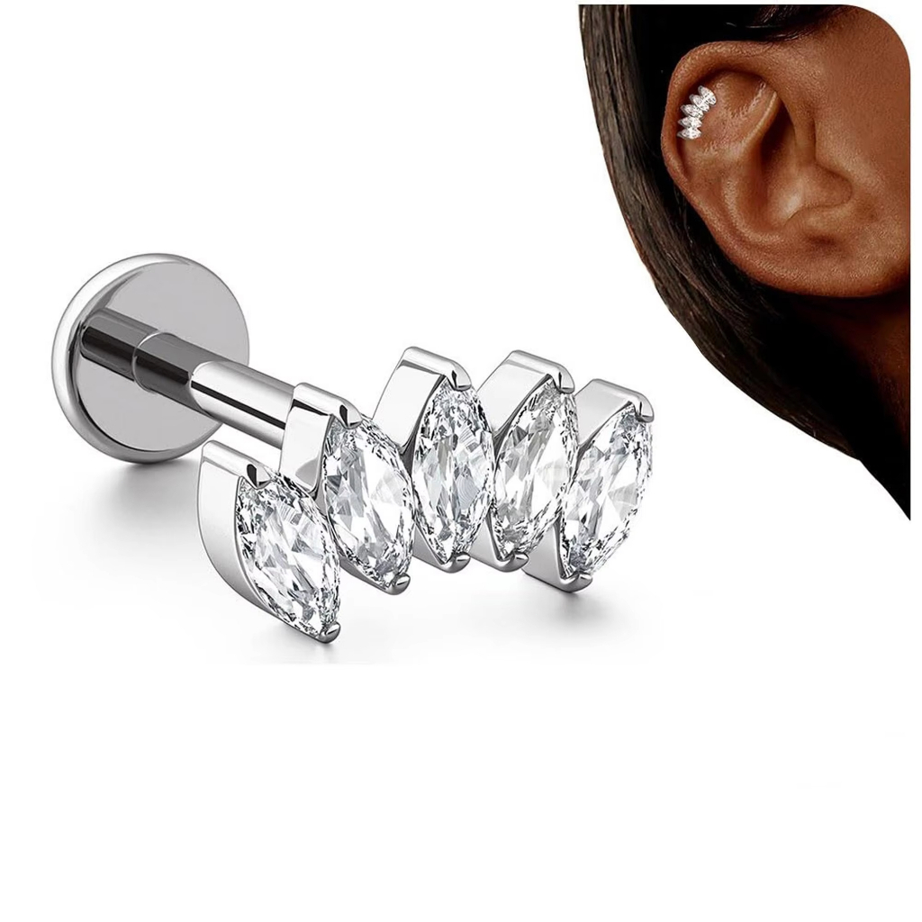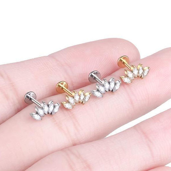 Piercing Helix Tragus Conch Labret 100% Titânio Cluster Zircônia Cravejada 1,2*8mm