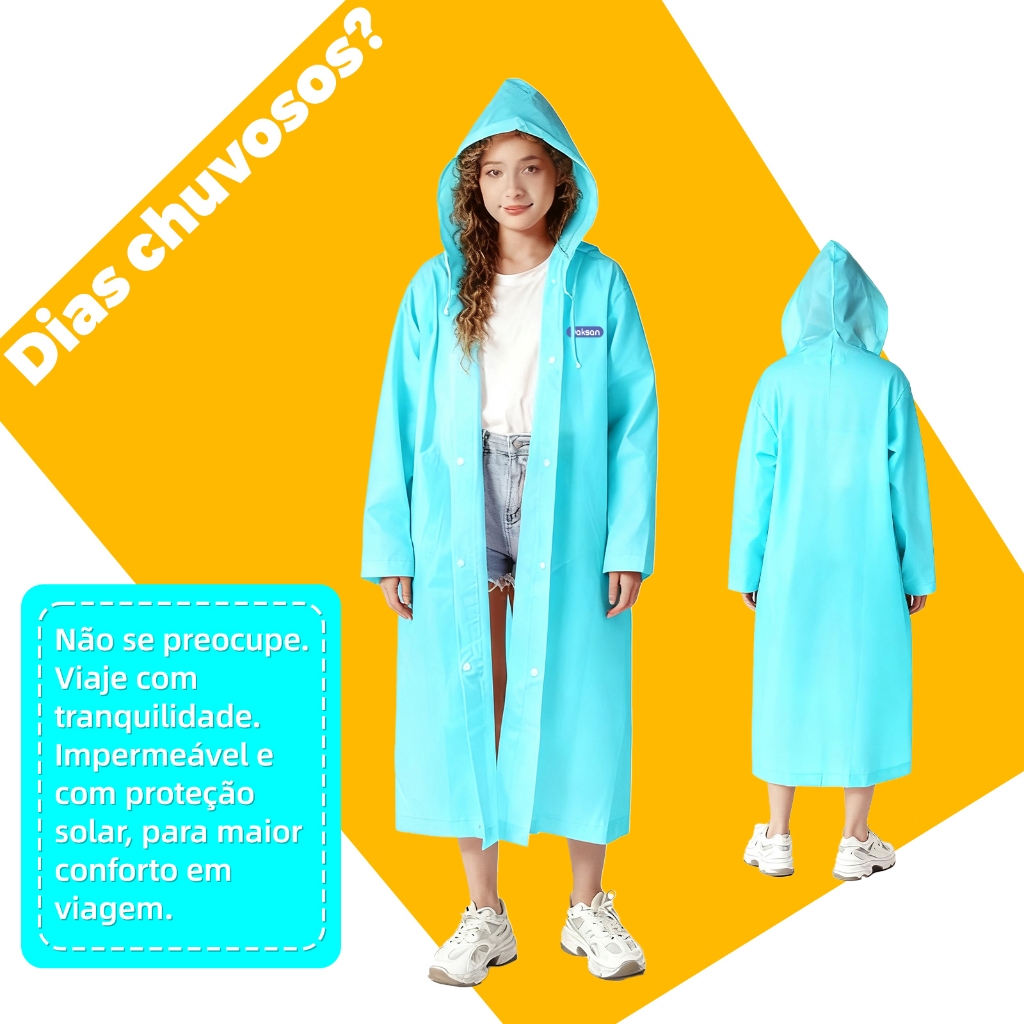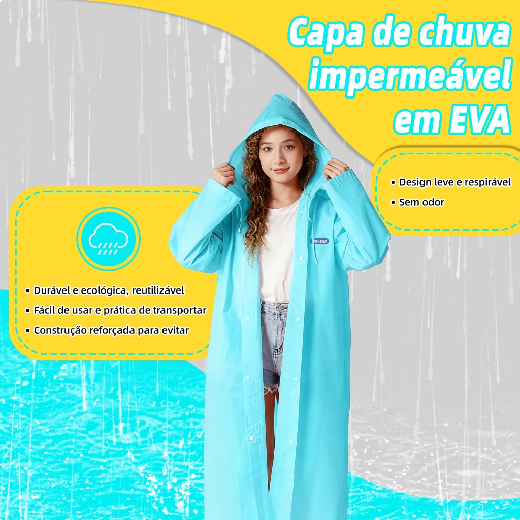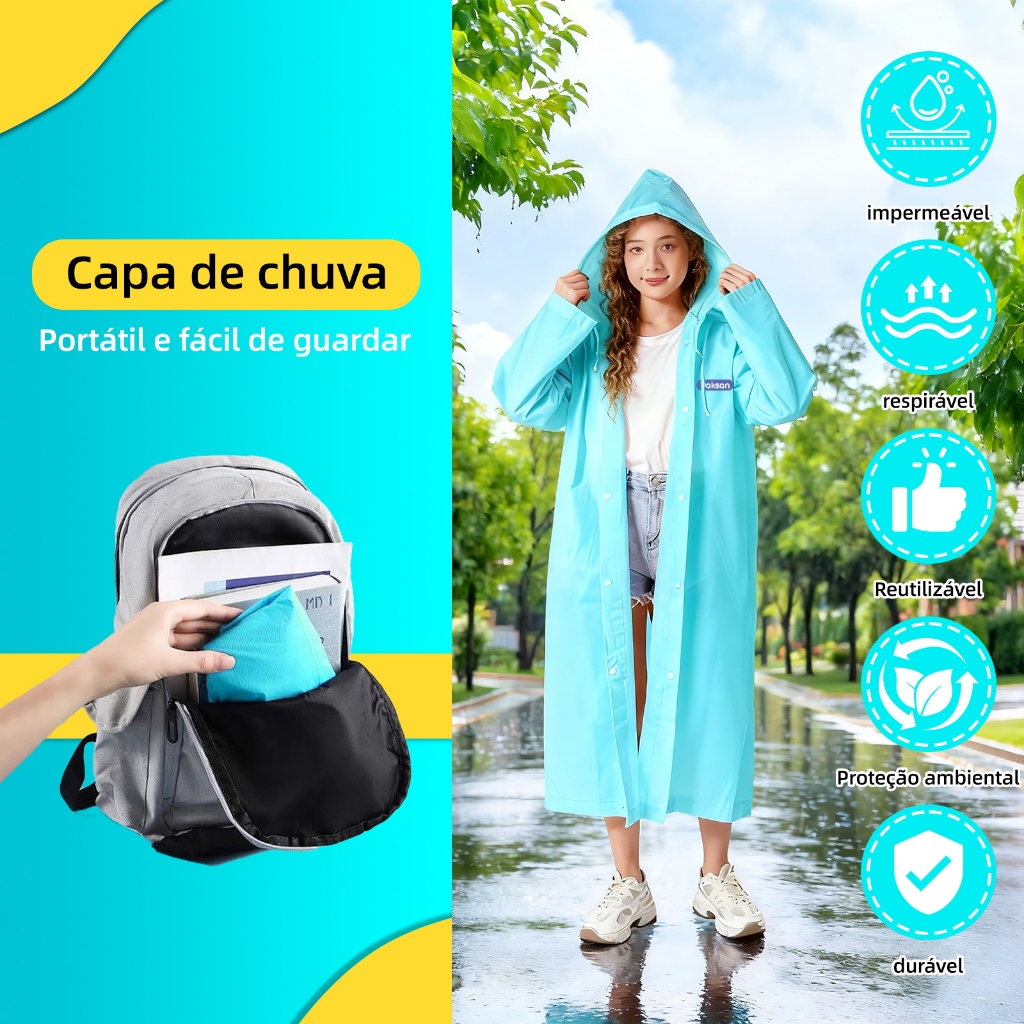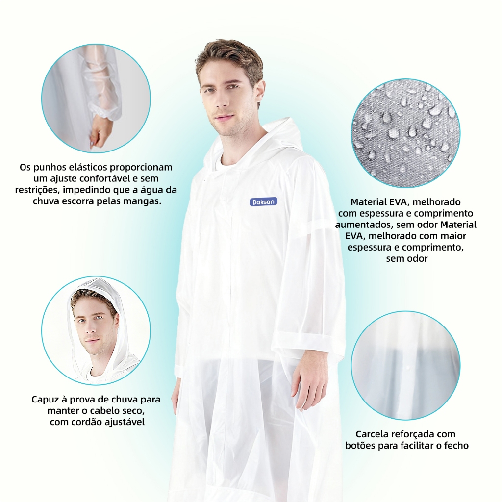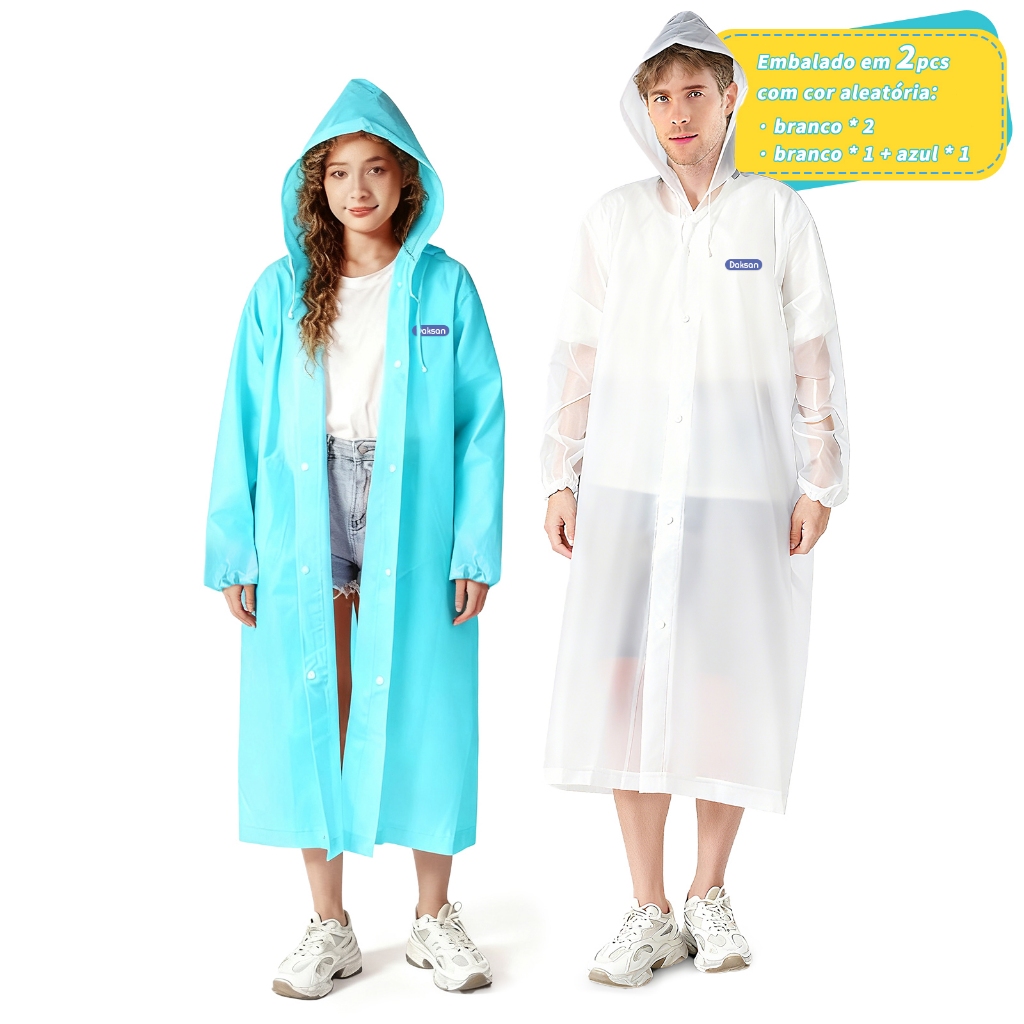 2PCS EVA capa de chuva Unisex com capuz e comprida transparente reforçada reutilizável