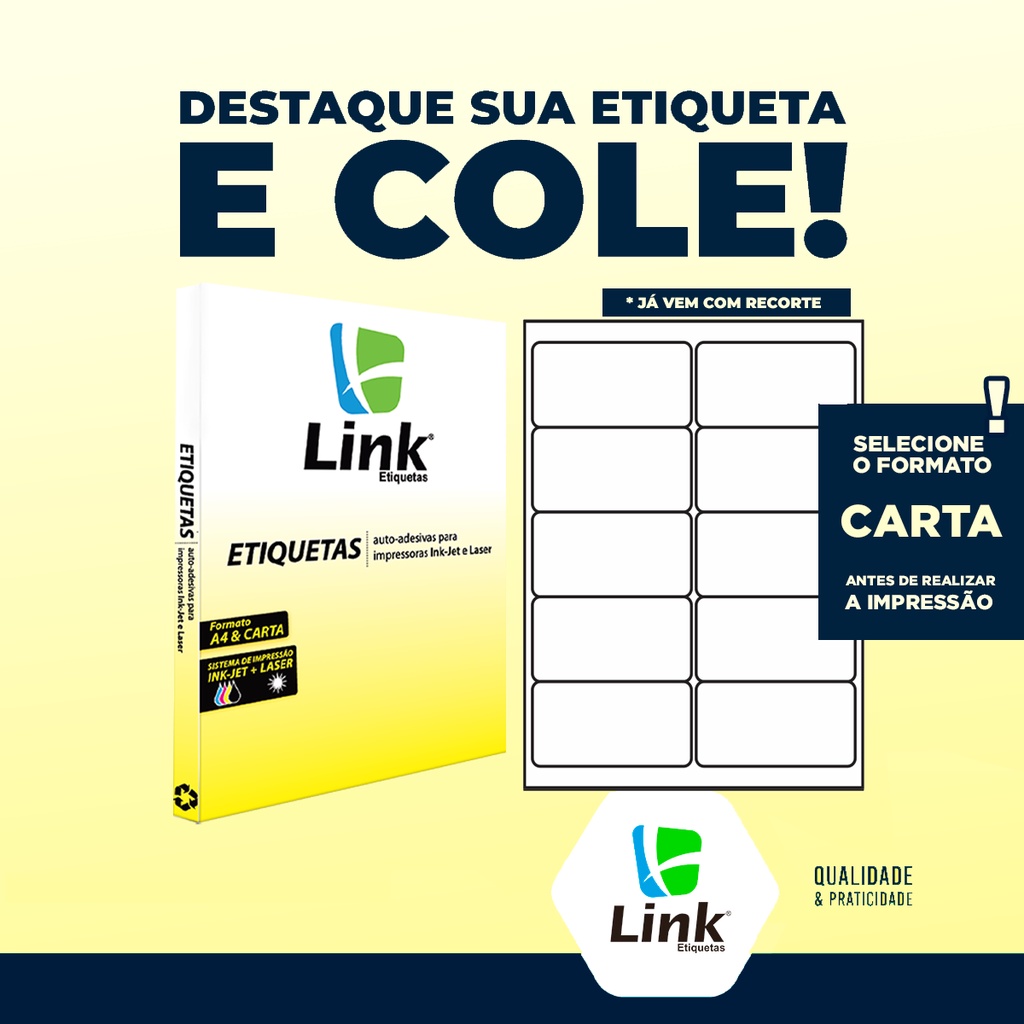 Etiqueta Adesiva Carta 101,6mm x 50,8mm 100 Folhas - Link Etiquetas