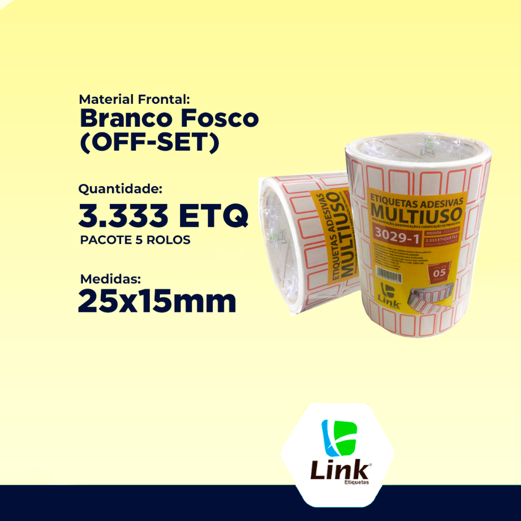 Kit C/ 5 Rolos de Etiqueta Tarjada Multiuso 25mmx15mm Total 3.333 Etiquetas