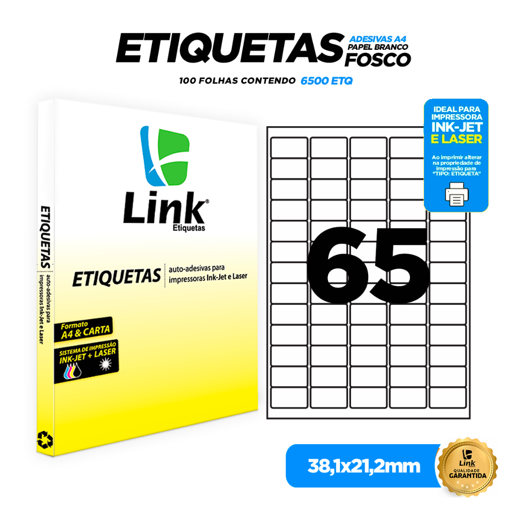 Etiqueta Adesiva A4 38,1mm x 21,2mm 100 Folhas - Link Etiquetas