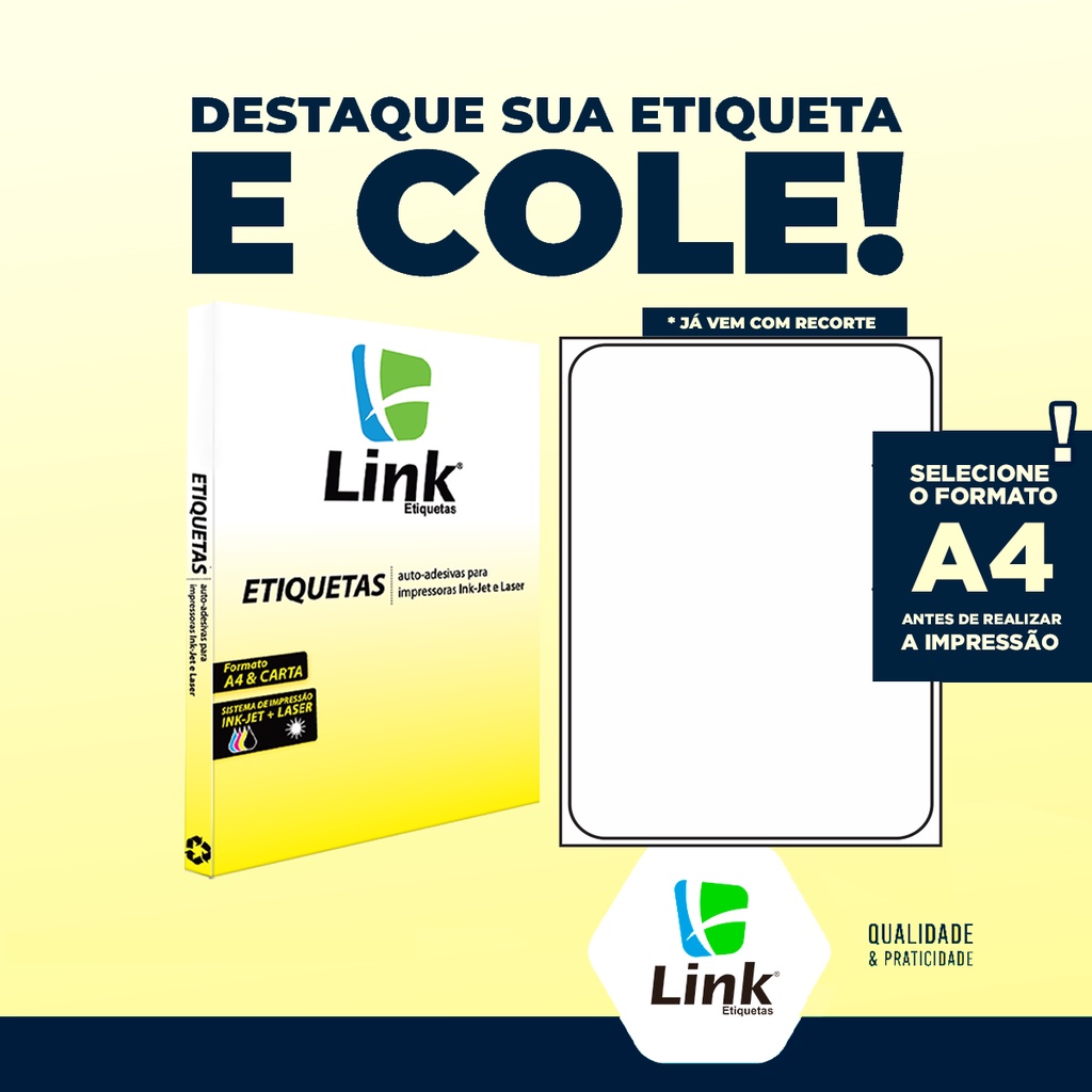 Etiqueta Adesiva A4 200,0mm x 288,5mm 100 Folhas - Link Etiquetas