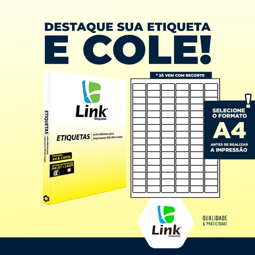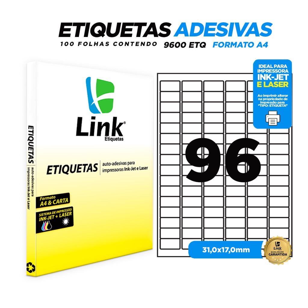 Etiqueta Adesiva A4 31,0mm x 17,0mm 100 Folhas - Link Etiquetas