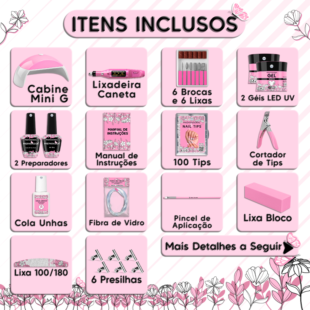 Kit Manicure Iniciante de Unha Pedicure Cabine Estufa UV Sun Mini Lixa Lixadeira Caneta Elétrica