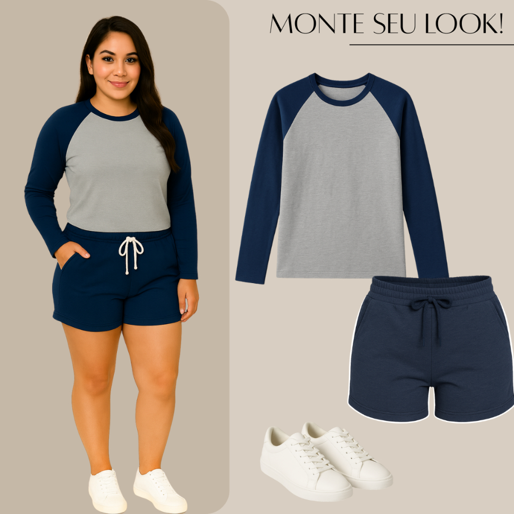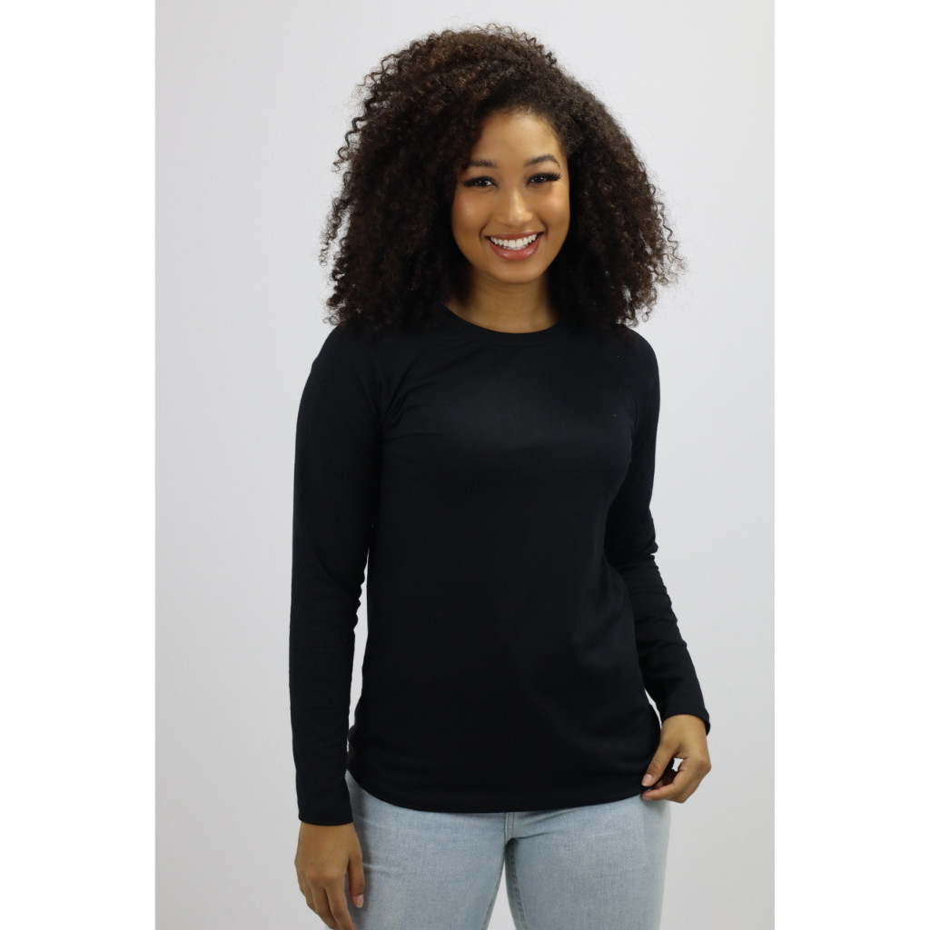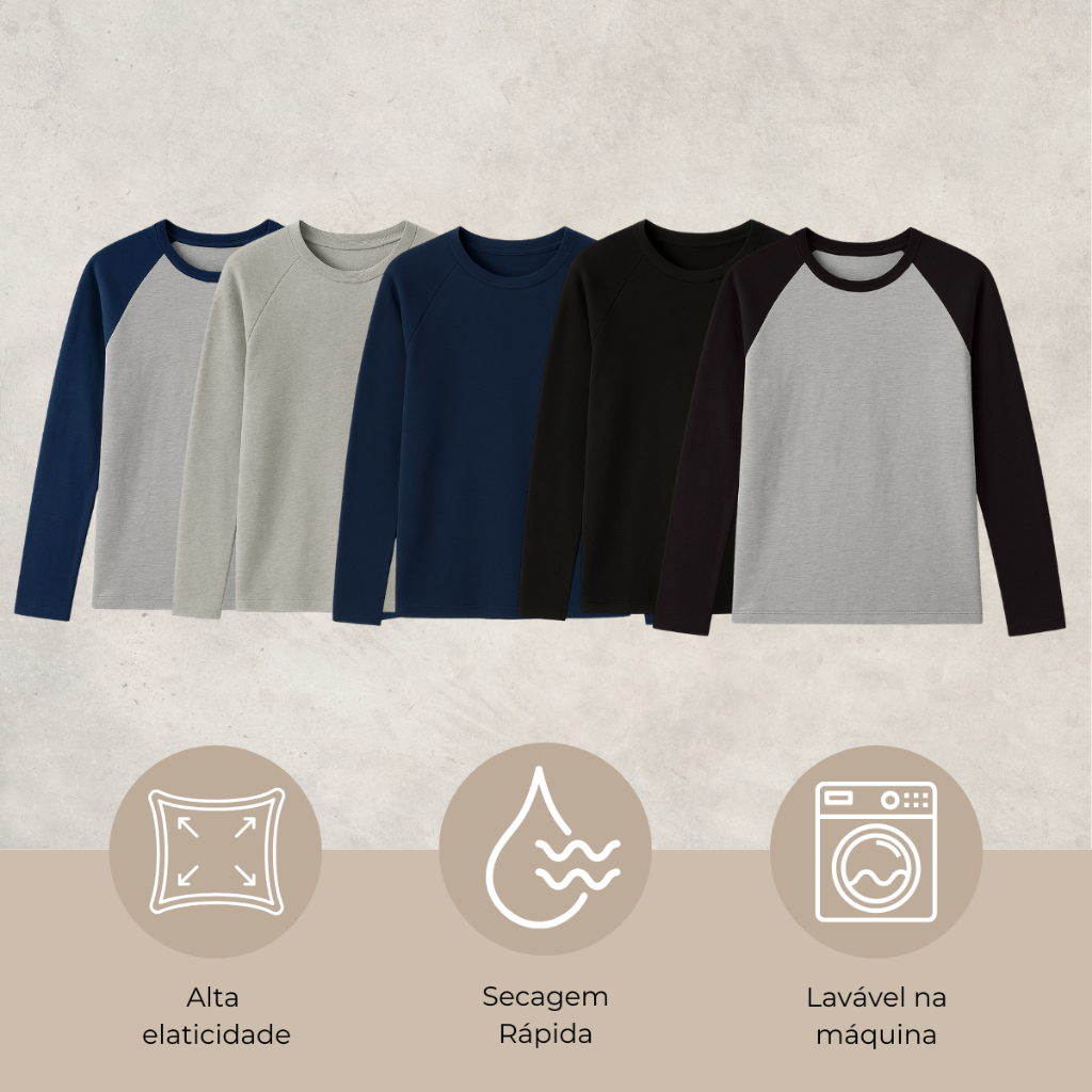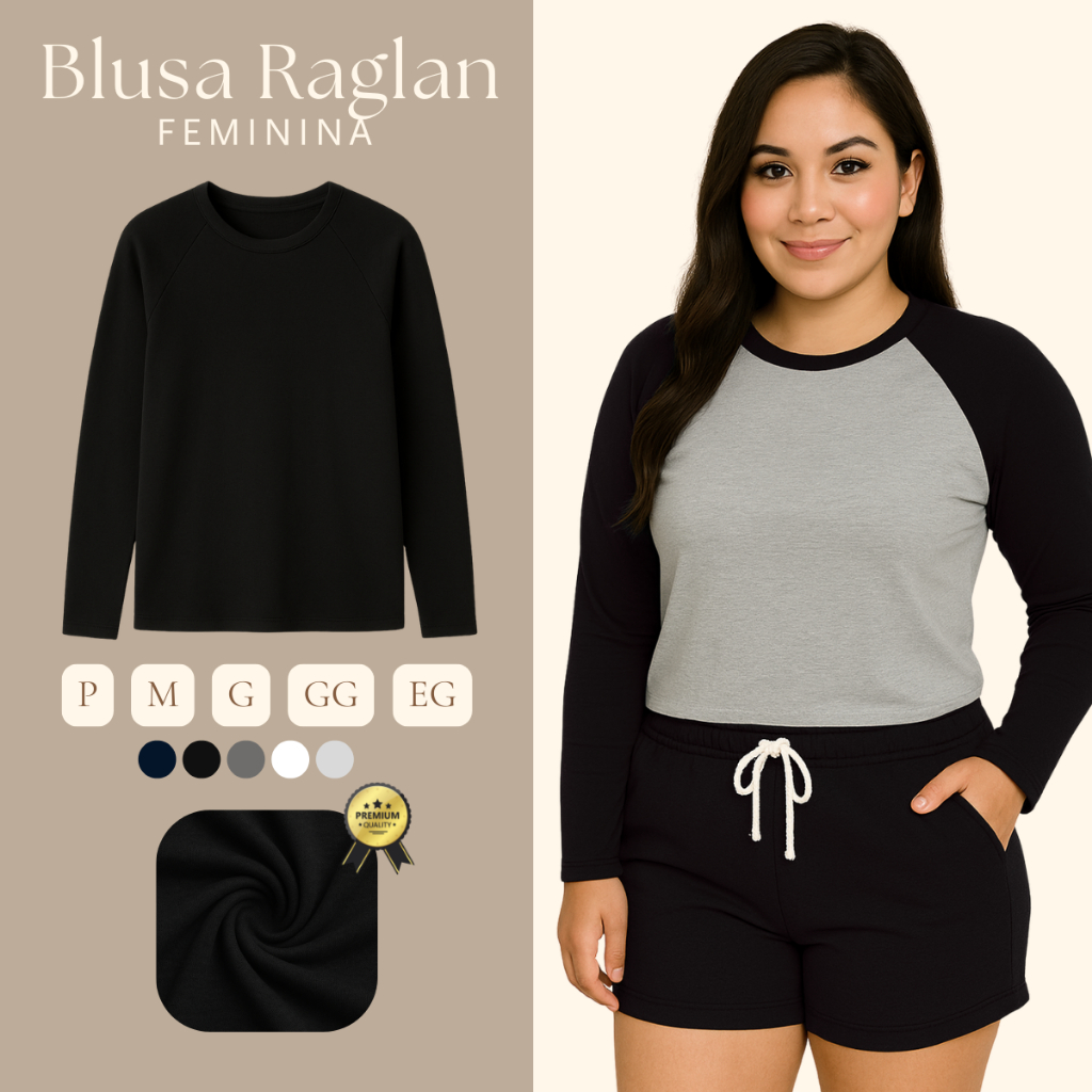 Blusa Básica Manga Longa Feminina Camiseta Raglan Manga Longa Malha Tecido Macio