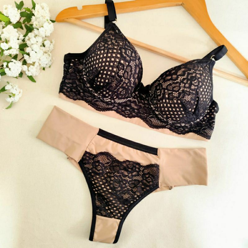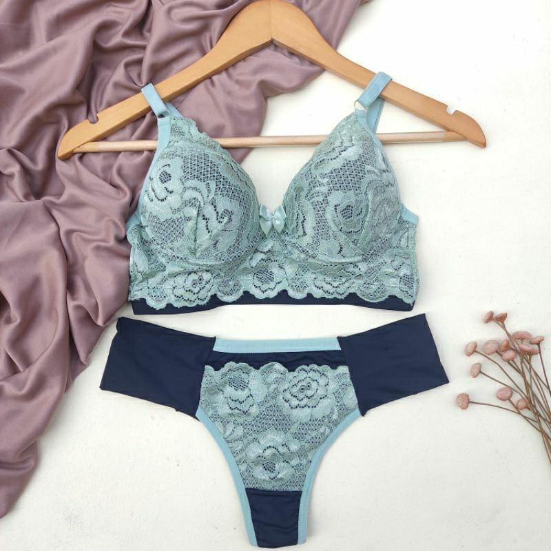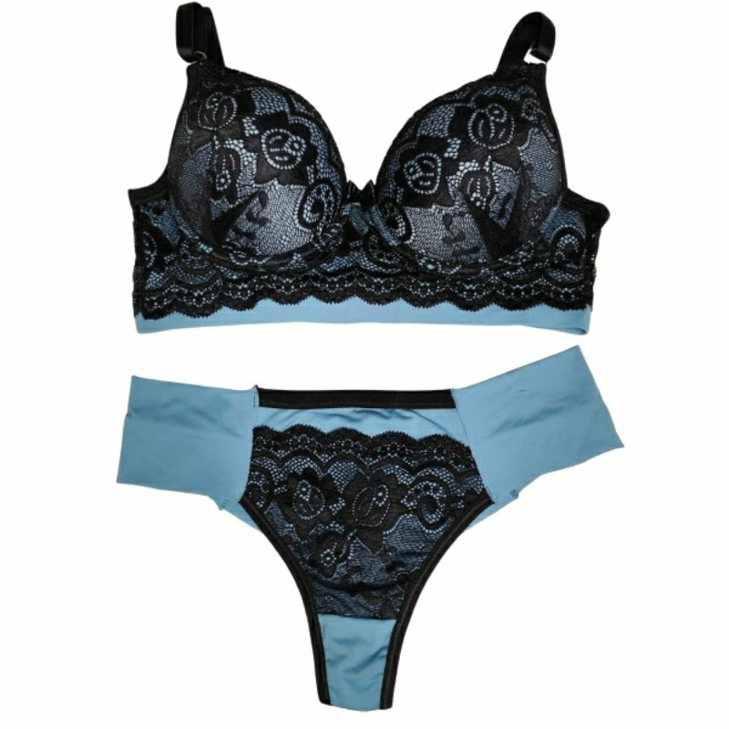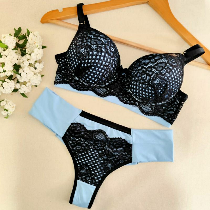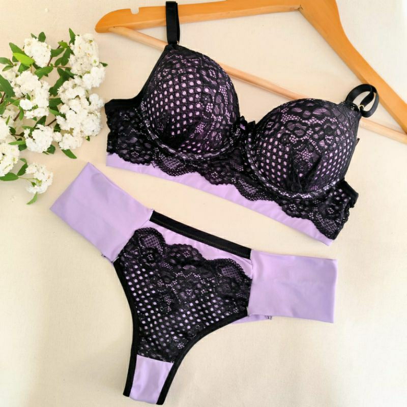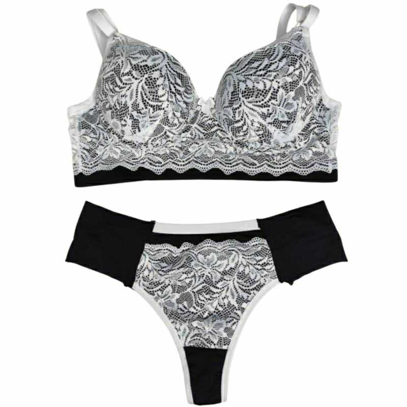 Conjunto Lingerie Renda/Rendado Bicolor Com Calcinha Fio Duplo - Moda Íntima