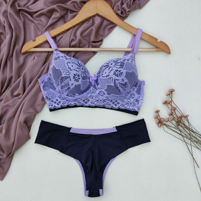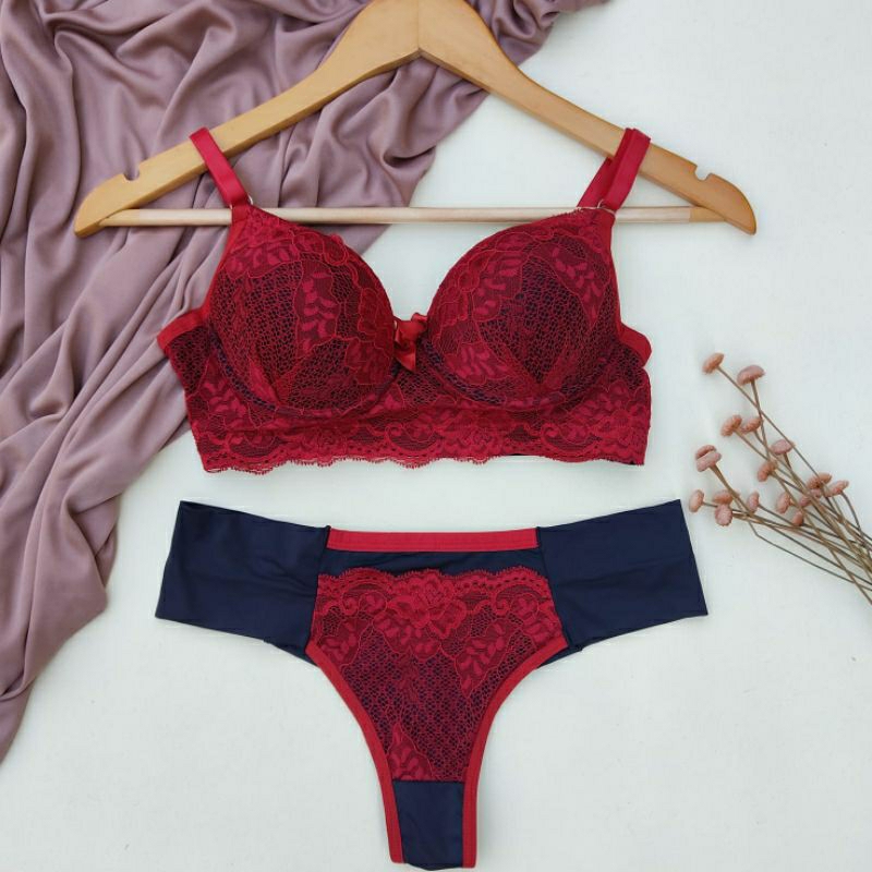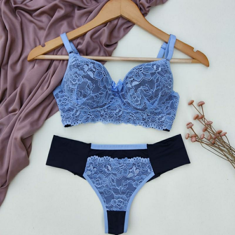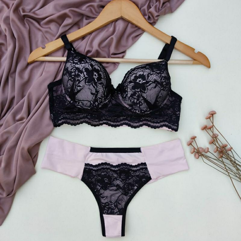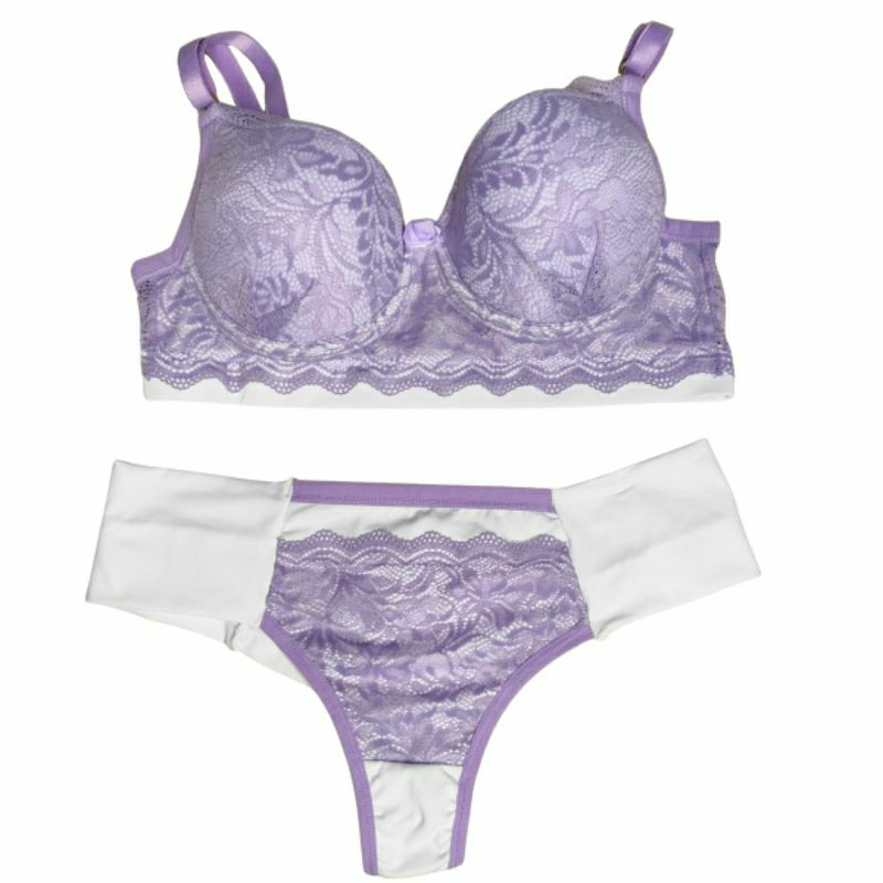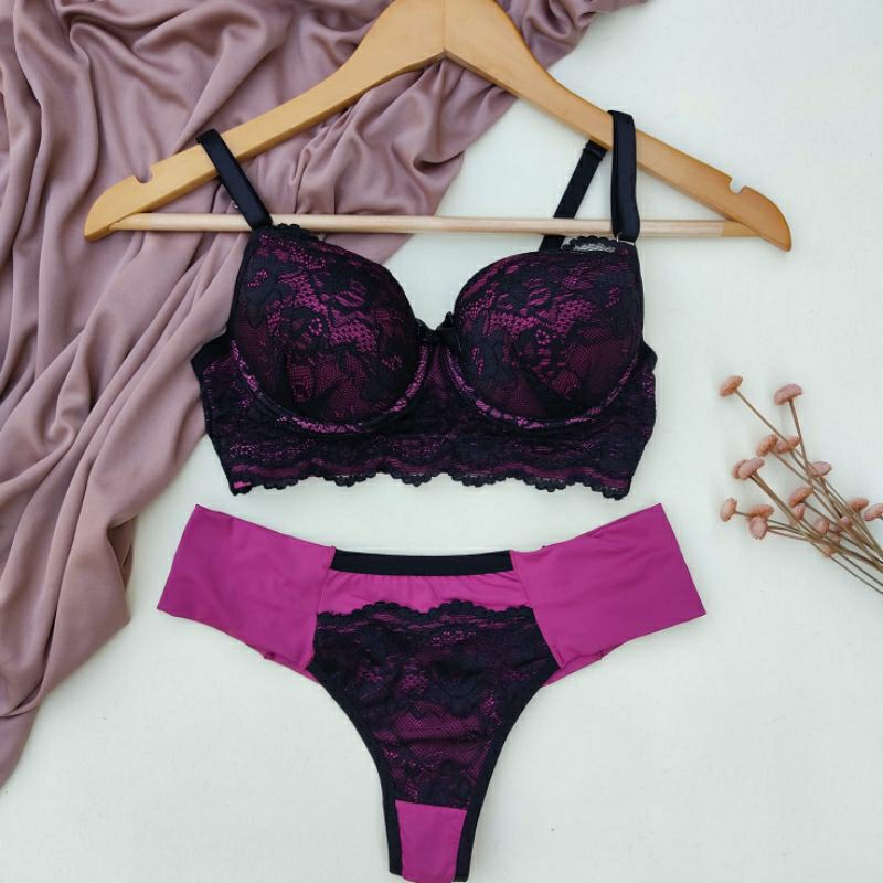 Conjunto Lingerie Renda/Rendado Bicolor Com Calcinha Fio Duplo - Moda Íntima