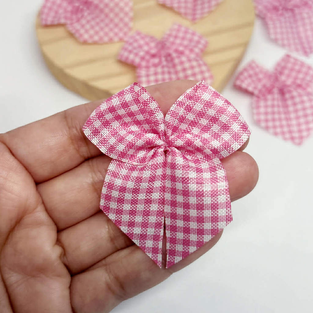 Laço para Lembrancinhas XADREZ ROSA 20/40/100 UNID. - nº5 - 5 cm DE TECIDO