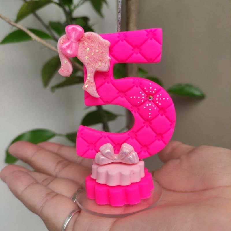 Vela de aniversário em biscuit menina / princesa /boneca rosa 1,2,3,4,5,6,7,8 e 9 anos