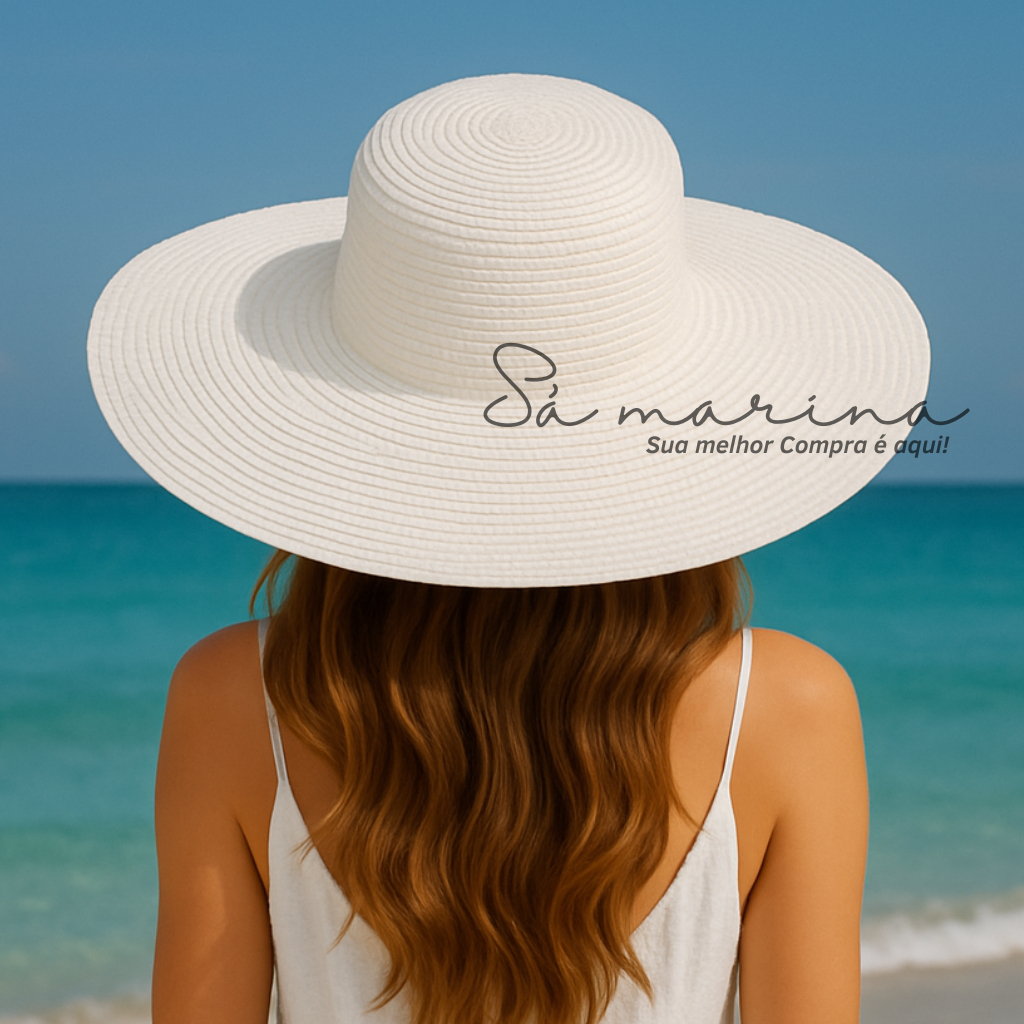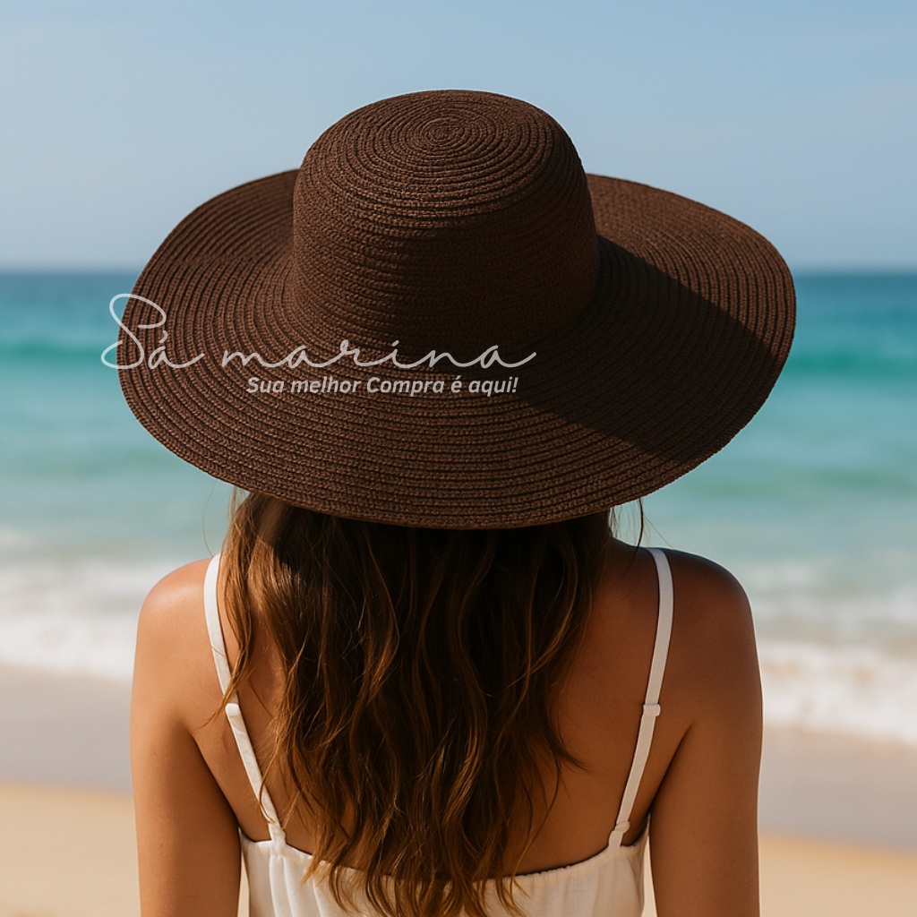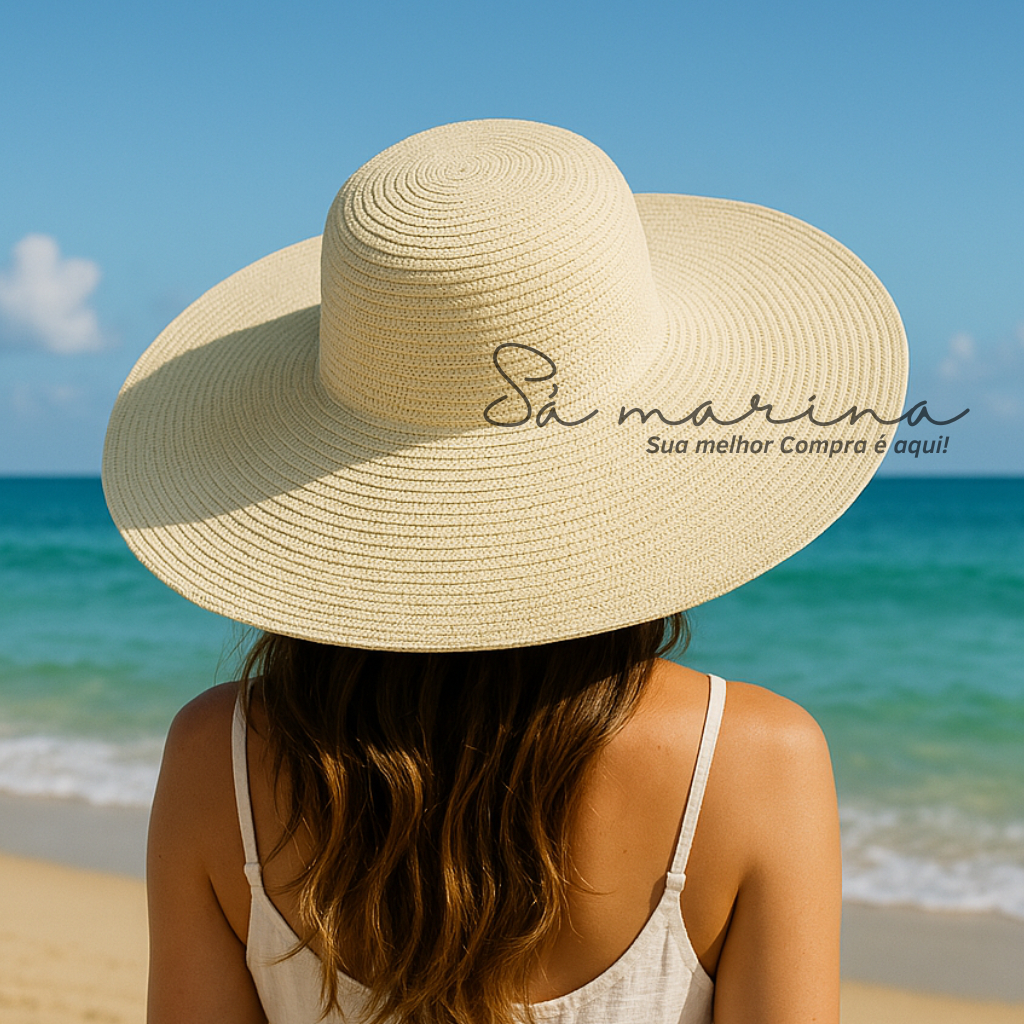 Chapéu Feminino Praia Sol Aba Larga Palha Flexível Moda Verão