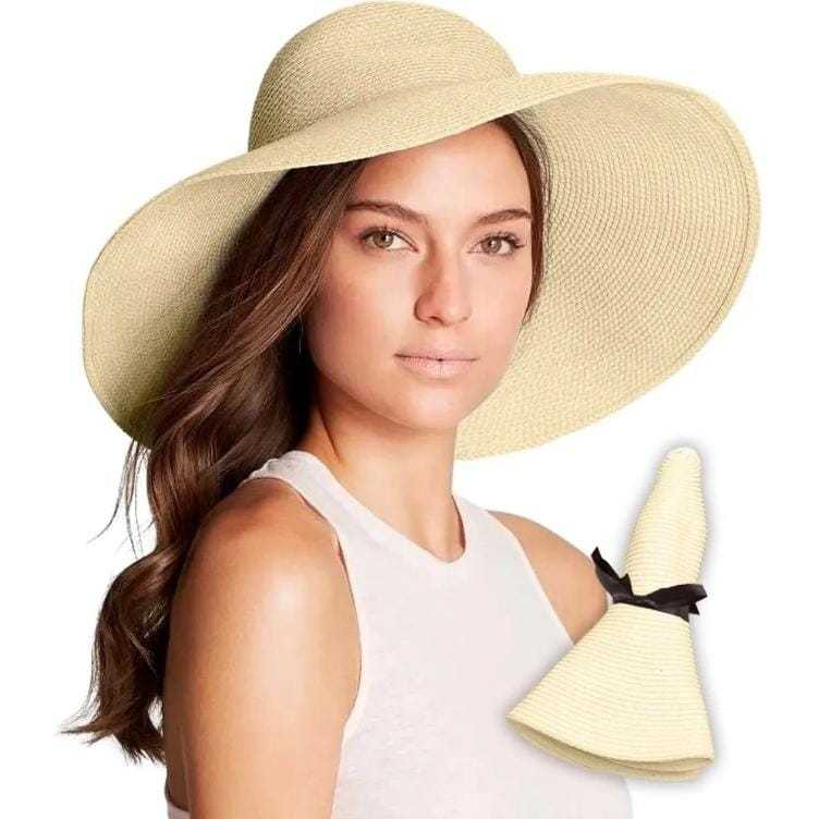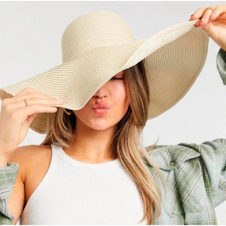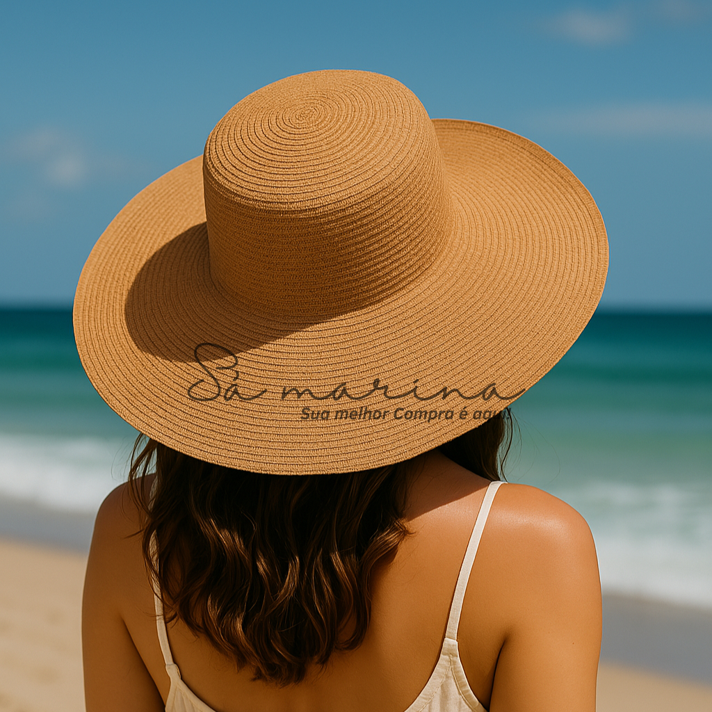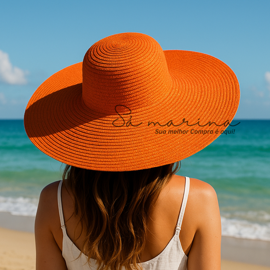 Chapéu Feminino Praia Sol Aba Larga Palha Flexível Moda Verão