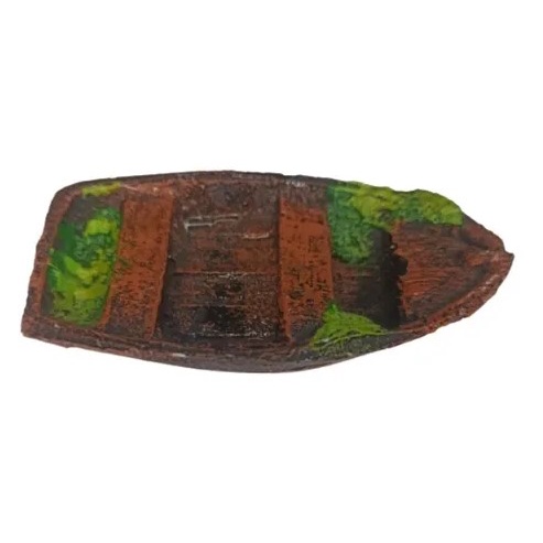 Enfeite De Aquário Em Resina Barco De Madeira canoa Pequena