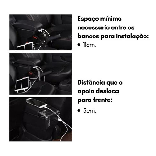 Apoio de Braço Universal Automotivo 7 Entradas USB Courvin Preto com Porta Copos Retrátil