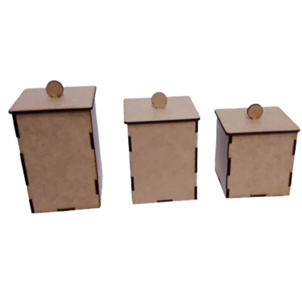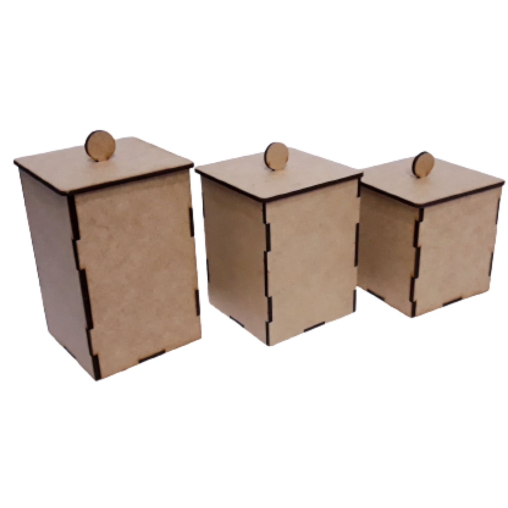Trio de Potes liso com tampinha no MDF cru Para kit Higiene bebê Decorações artesanato em geral